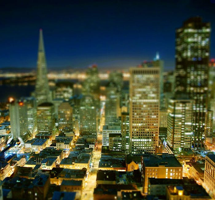 The Sansome building’s patio was high enough to make an approach to the edge tinged with the slightest bit of vertigo, and was actually populated by about a dozen fellow view-seekers. A relatively plain tiled patio with planter boxes, it benefits from the varied heights of the surrounding buildings, and a sliver of a view of the Bay between skyscrapers.