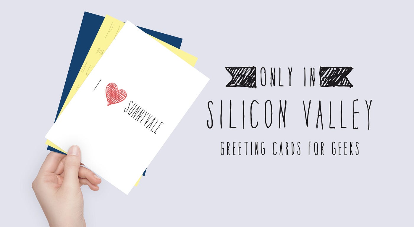 I have lived and worked in Silicon Valley for more than 20 years, and it’s a truly unique place, but it’s a bit underserved when it comes to cheesy, touristy design fun. New York, San Francisco and other cities have been getting way too much love—until now! Introducing a greeting-card collection for geeks named “Only in Silicon Valley.”