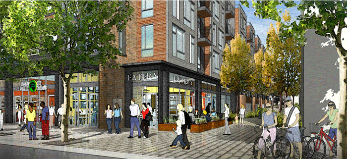 As an alternative, Save the Hill has submitted its own blueprint that calls for a “comprehensive adaptive reuse project…[that] remodels the existing buildings in a visionary plan that honors both our neighborhood’s character and history while delivering an authentic mixed-use project for the community.” The plan would allow for between 131 and 206 units of housing, while nixing the potential 20,000-square-foot “formula retail” space.