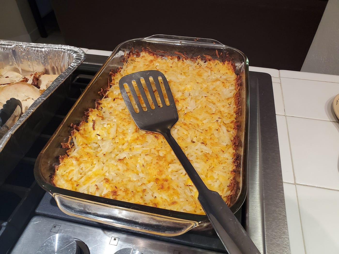 Read below to find the recipe for my mom’s cheesy potato casserole: