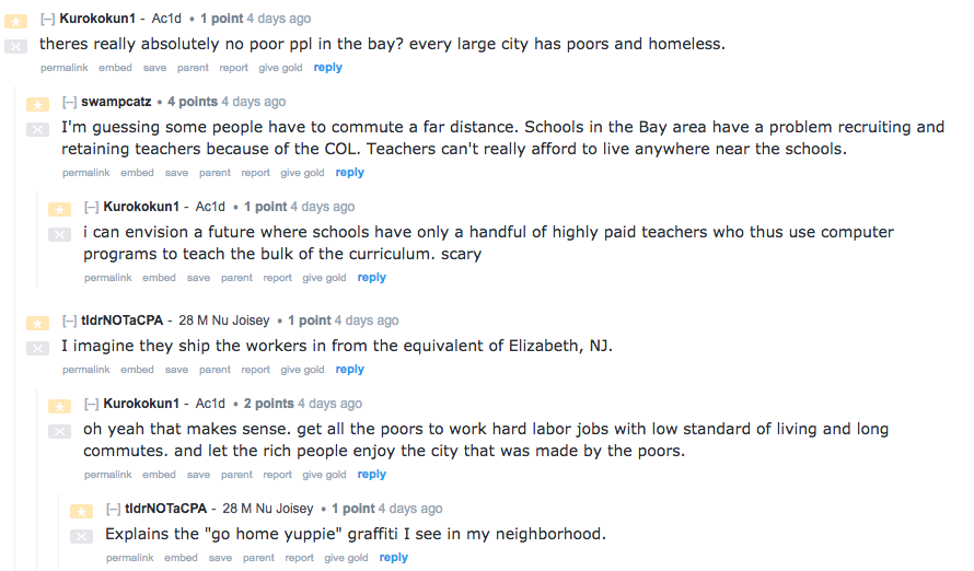 After it came out, I posted the article on the OkCupid subreddit as a way of gauging what other online daters thought of the experience. Other than some frustrated rock climbers calling me a “condescending bitch,” forum users had some whacky, occasionally offensive and often spot-on observations about life in the Bay Area. Here are some observations that reveal what the rest of the world thinks of us: