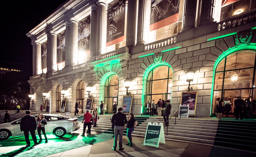 If you were driving down Van Ness Avenue in San Francisco last Monday evening, you might have seen the green carpets rolled out in front of the War Memorial Opera House. You might have thought, “Maybe this is an early St. Patrick’s Day celebration?” Wrong, my friends. It was the ninth annual Crunchies, the Bay Area’s own tech-industry awards show put on by the tech blog TechCrunch.