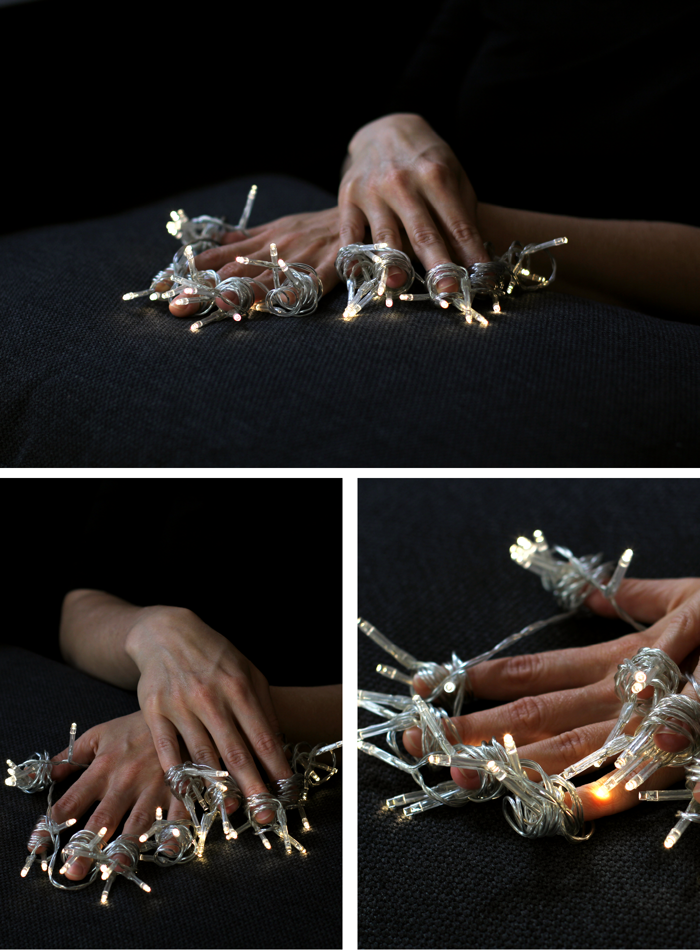 Everyone loves Christmas lights, so hang out by an outlet and let the party come to your nails. Note: if you have any personal days left, take them now, ’cause this look makes it nearly impossible to type or really do anything at all.