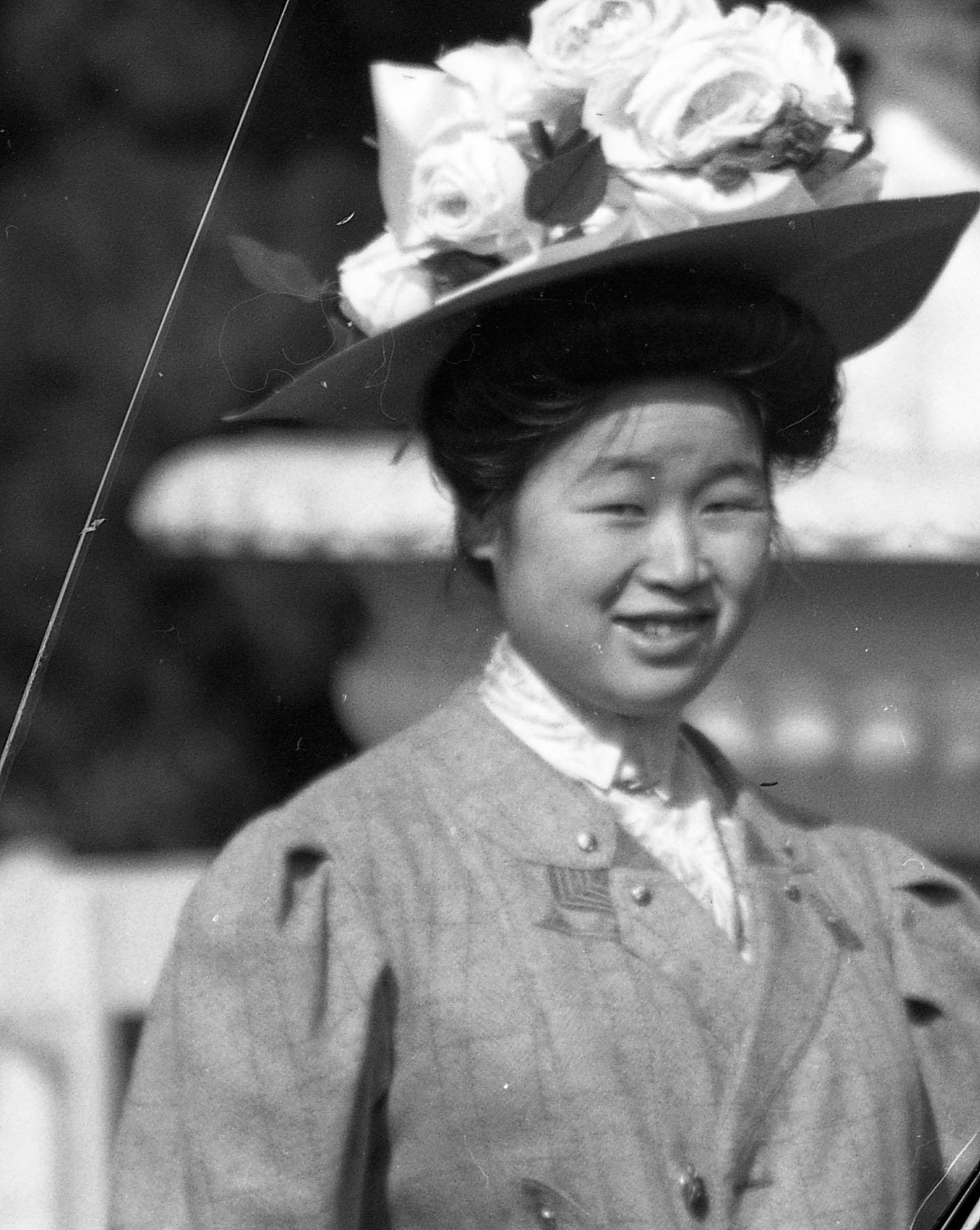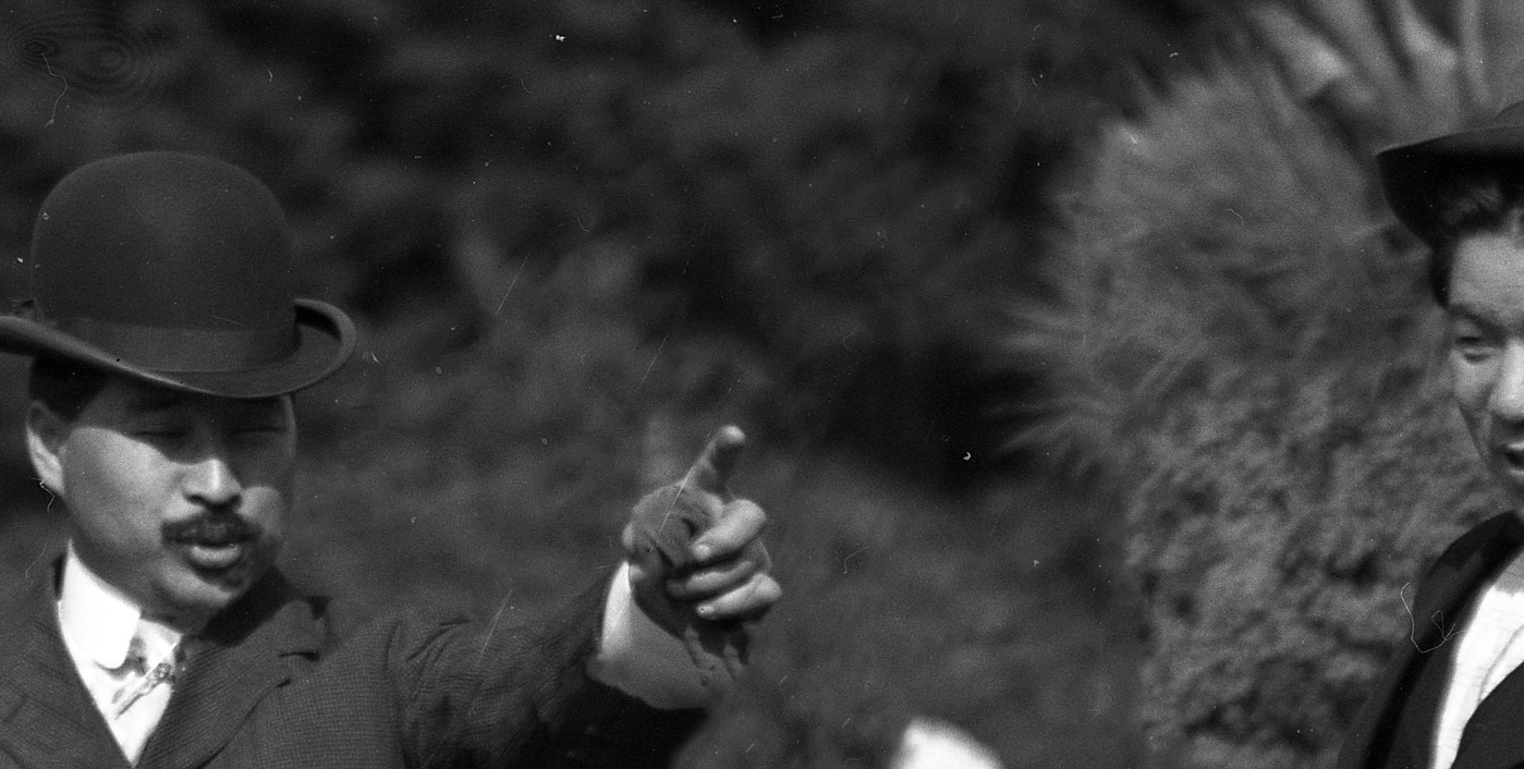 Again, glass plates contain so much detail that you can zoom into the image, pulling out crisp portraits of the people depicted. In this detailed view, you can see the ornate details on one person’s hat, and the patterns around the lapel of their coat.