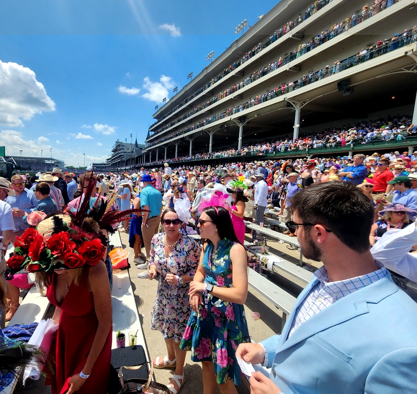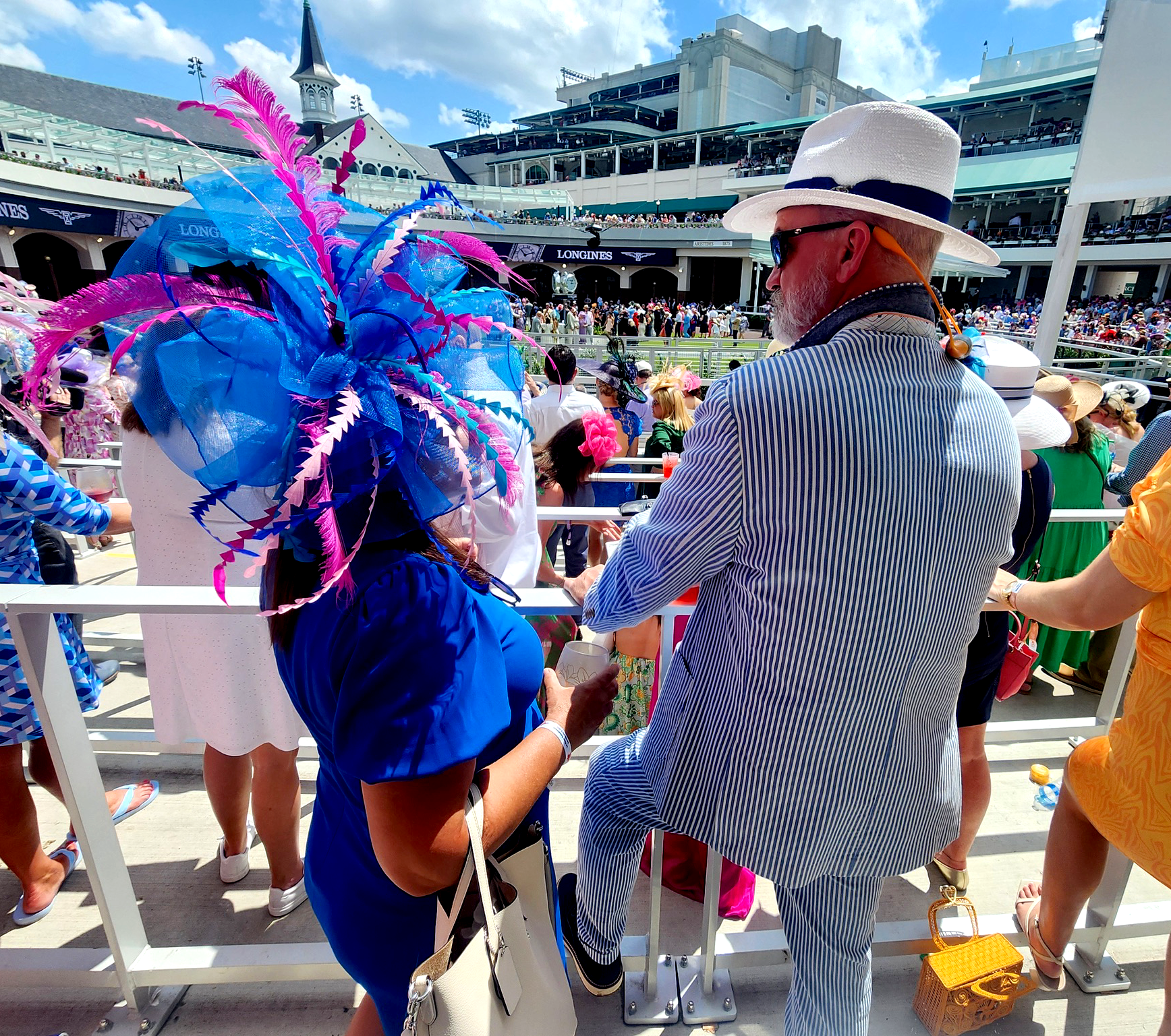 The Derby still had problems but mostly with classism. They created a tiered system in the pandemic to cut down on crowds and to eliminate exchanging cash, so an entry-level $700 bought two days that included food and alcohol. But it also siphoned off inexpensive ticket-goers from the rest of the glitterati, confining them to a gated area in the mud with lawn chairs. In the grandstand bleachers, we saw a woman in full Karen mode yelling at others that her son works security and to get out of this exclusive area.