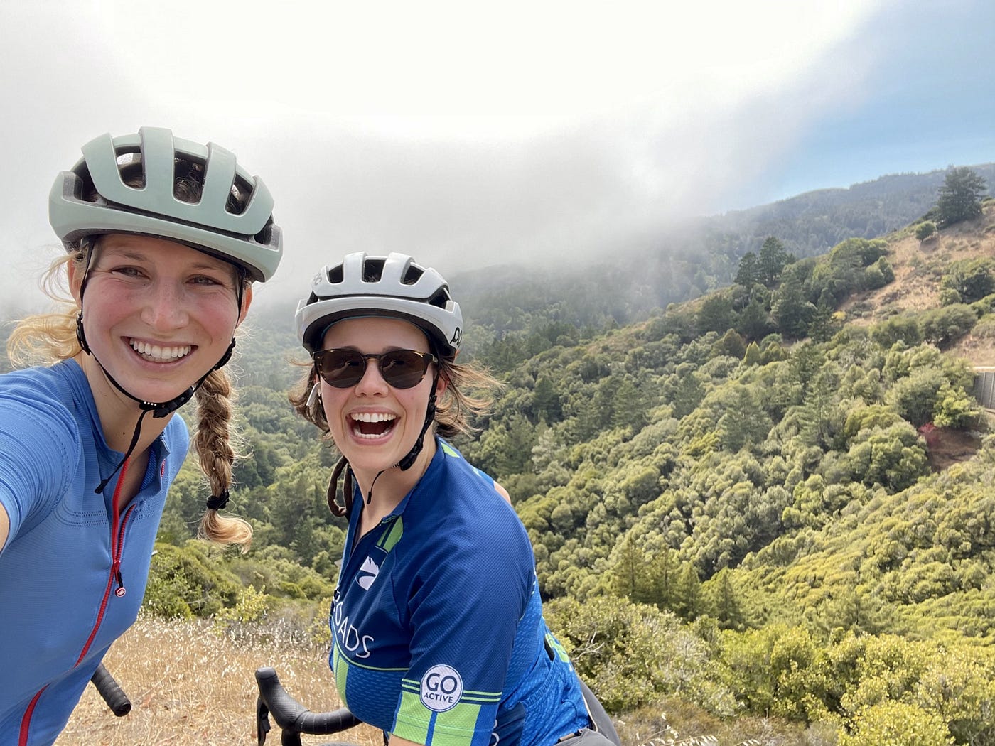 Our lunch ride is a straight shot up the Berkeley Hills. I break an early sweat on the steep beginnings of Spruce to rise above the chaos of the city below, where thoughts are crisp as air. Elle and I sync side by side, curving towards our classic selfie shot at the lookout.