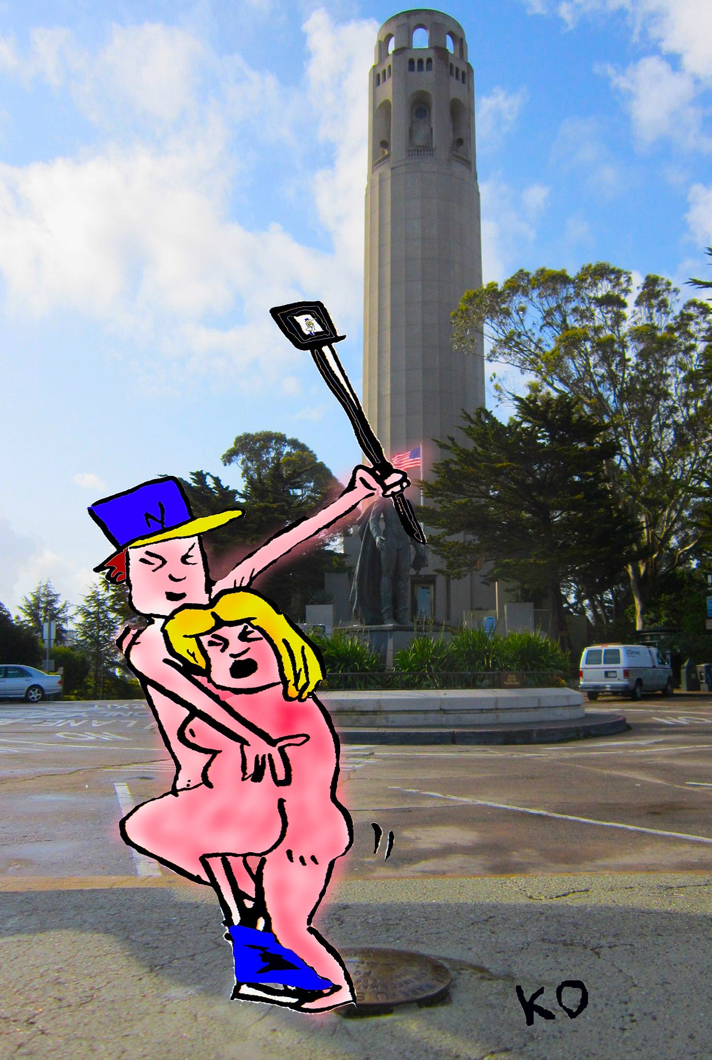 Erected in 1933 as a tribute to Lillie Hitchcock Coit, the structure represents female empowerment and the subversive potential for female dominance within an established patriarchy. Lillie Coit rejected the stereotypes of her time, assisting firefighters as a young upper-class socialite, gambling with reckless drunkards and smoking cigars in pants that were customarily worn by men. She literally wore the pants. Then, after she passed away, she was memorialized by the largest phallus ever to grace the West Coast.