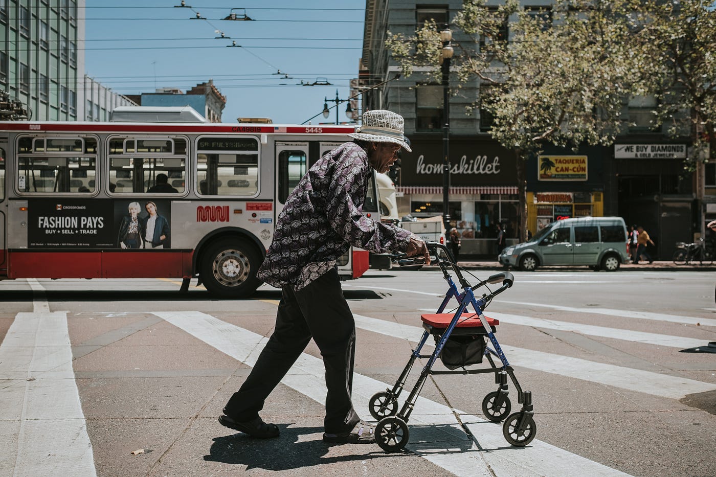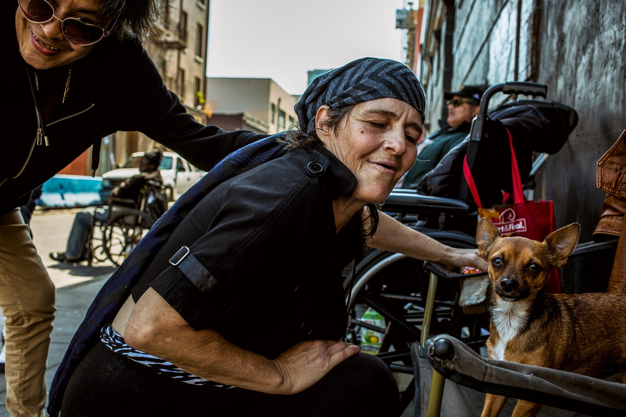 The result was Tender Souls, a “photo documentary project” that seeks to humanize the residents of the Tenderloin in an empathetic way that defies negative stereotypes about the neighborhood. Both Uribe and Gieser have deep roots in social work: Gieser is on the Legacy Committee at GLIDE, the beloved community church and provider of social services, and works as a creative consultant both for GLIDE and other organizations in the Tenderloin; Uribe was a long-term community volunteer at faith-based nonprofit City Impact, and is now Artist-in-Residence at City Hope.