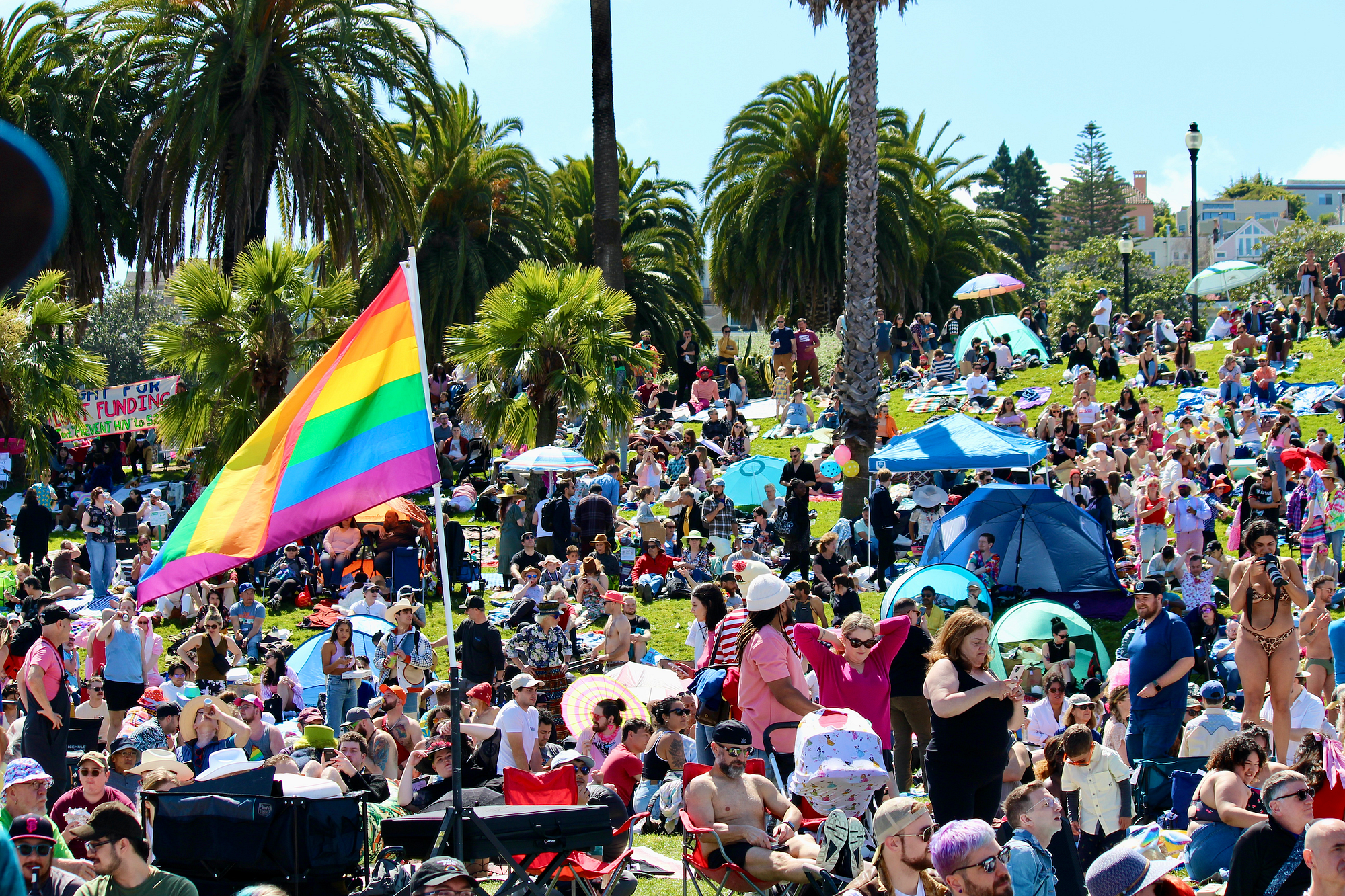 On the final day of March, Dolores Park transformed into a spectacle of glitter, glamour, and irreverent celebration as the Sisters kicked off their Easter Celebration. Hosted by longtime SPI Member Sister Roma, and community activist, RuPaul’s Drag Race alum, and Trans pioneer Honey Mahogany the event began with a kid friendly program, and an easter egg hunt as the revelers filed in.