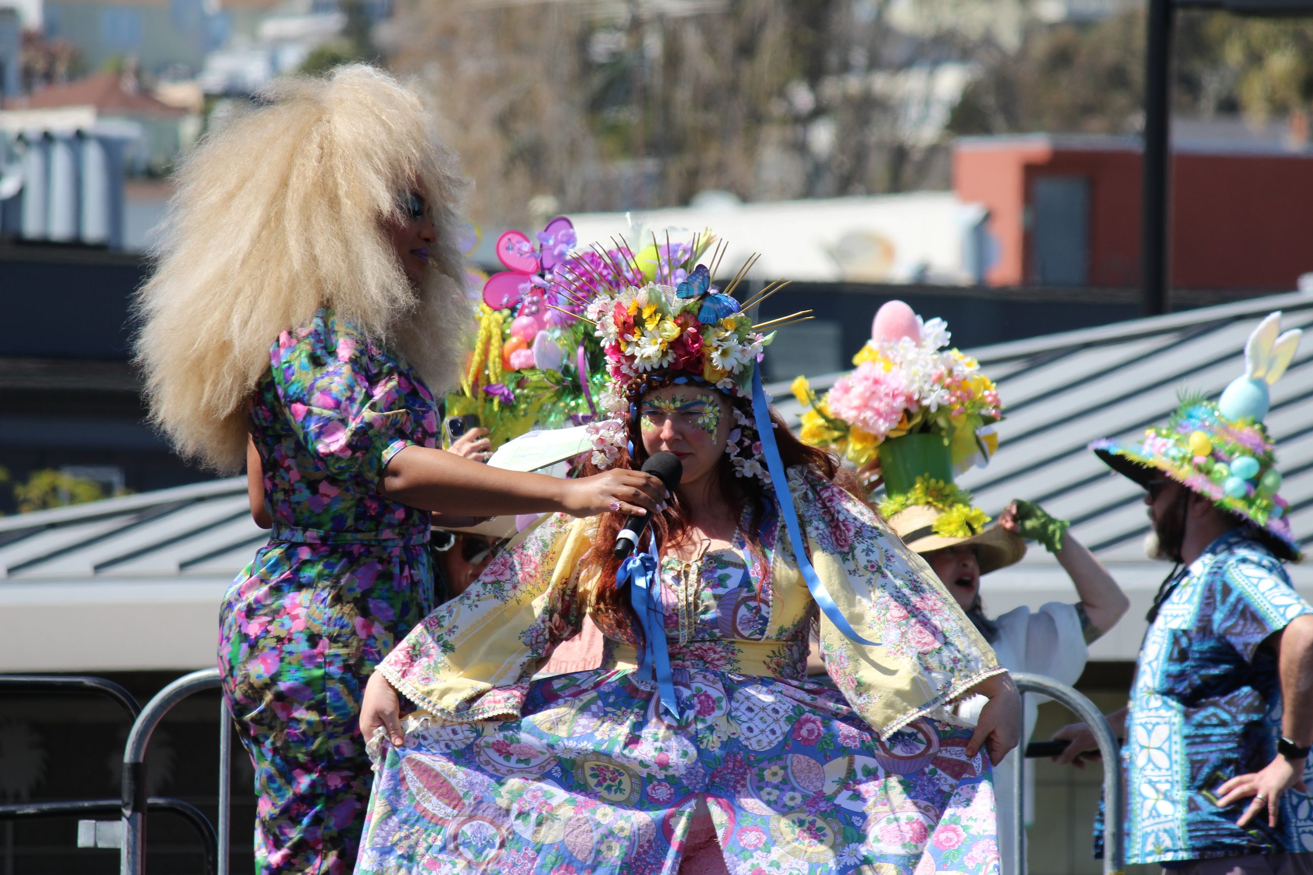 Next, the first of the three contests, a parade of custom easter bonnets. All manner of floral, pastel, bunny and egg-laden tributes crossed the stage but one very tall entry from a person named simply Miguel, encouraged the gathered masses to vote in the upcoming election. The thousands in attendance voted with their voice, and Miguel was proclaimed the 2024 Easter Bonnet winner. From the stage it was mentioned that this is Miguel’s 8th victory.