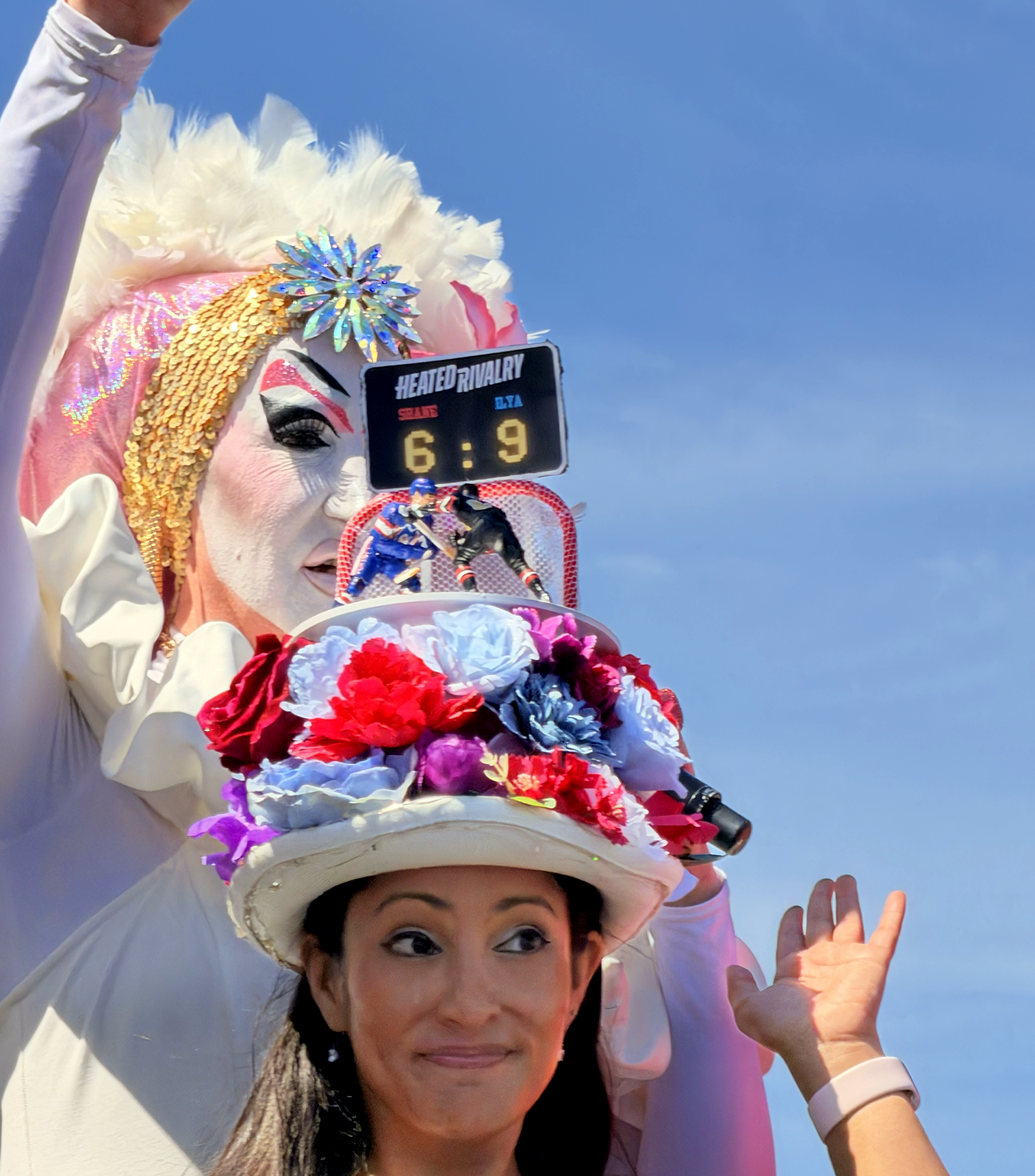 But the crowd favorite bonnet was, of course, Heated Rivalry themed.