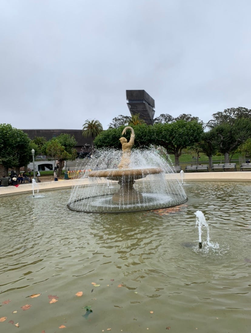 Kayla, Alex, and I were standing in front of the Rideout Fountain in Golden Gate Park’s Music Concourse as the world vibrated around us. Children chased each other screaming, teenagers canoodled on park benches, dogs wore tuxedos for their peoples’ wedding photos, tourist families scuttled between museums — and we stood there absolutely peaking on acid, giggling at the absurd statue in the middle of the fountain.