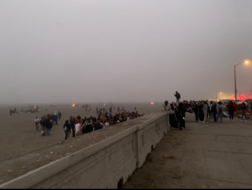 I’d love to tell you that the sunset was magnificent. That my LSD vision helped emblazon the luminous sky to bring me tears of joy and beauty. But it would be a lie. We couldn’t see shit. There essentially was no sunset. It might honestly be one of the thickest fogs I’ve ever seen. The sky went from hazy grey flannel to hazy black bed sheets. Not an ounce of color in the sky. But that’s OK because what we encountered was even more fascinating.