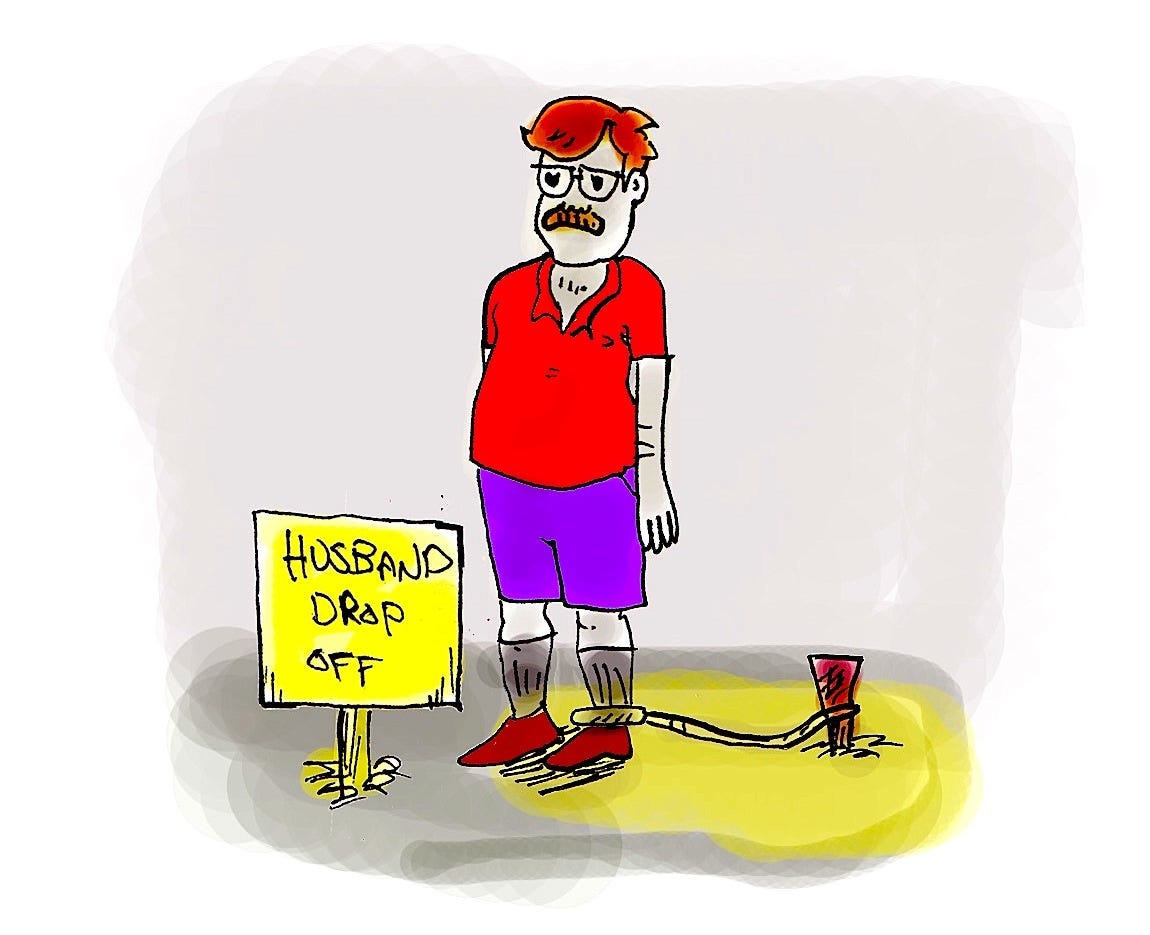 There were RVs and tents for miles. I was one of maybe a handful of men at the event. I saw someone’s husband being tied to a post to wait quietly while his wife went to wool-dying seminar.