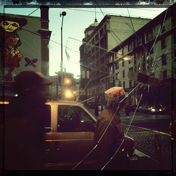 One of the pleasures of 21 Club has always been sitting by the window where I can watch the lurid pageant of Turk and Taylor. It’s more entertaining than anything on TV since I never know what I’m going to see — a street brawl, a head-on collision, a homeless guy stretched on a hospital bed pedaling himself along. Sometimes I see people running away from something, people checking every parked car for an unlocked door, women selling hard drugs out of their vaginas, and street hookers of every variation prowling the drag and freshening their makeup.