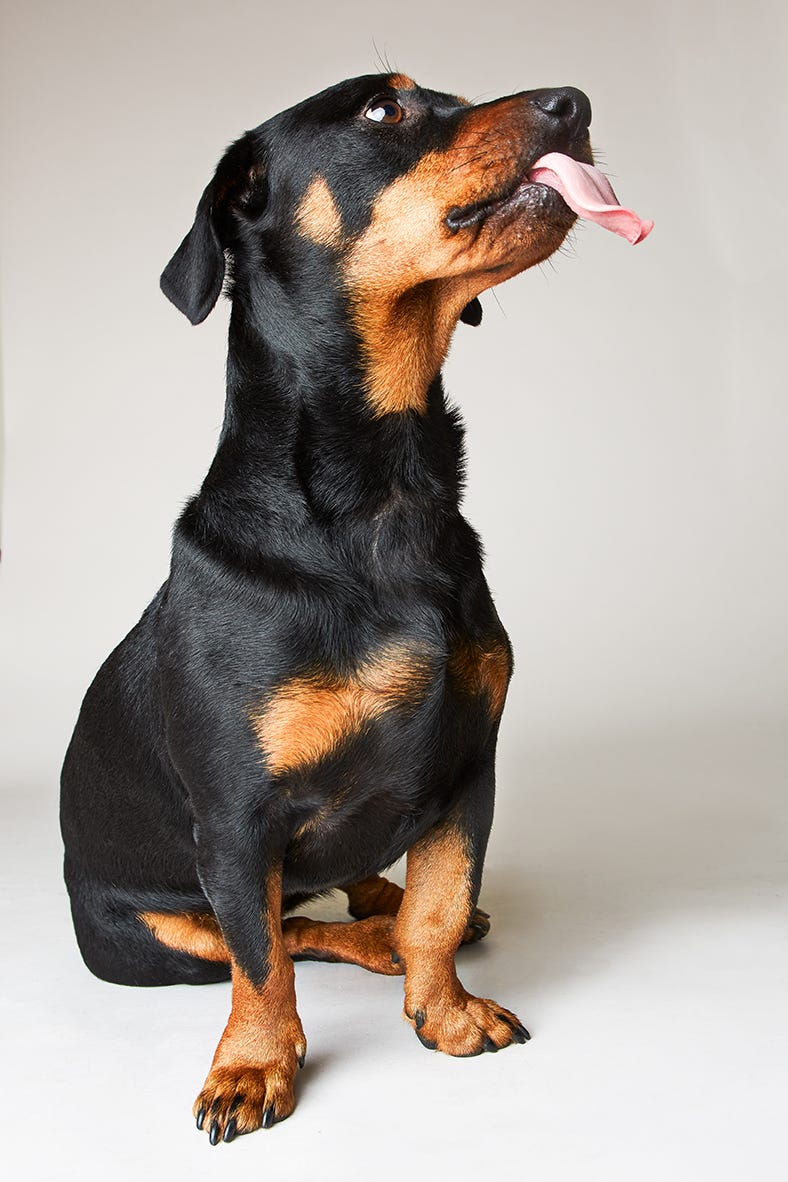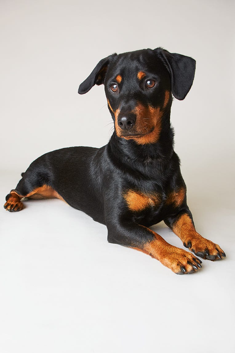 “Stuart was adopted three years ago from Rocket Dog Rescue. He was six months at the time. He is a Rottweiler/daschund mix. His owner’s previous dog had passed away, and she was living alone and was looking for a companion. She had been on the lookout for a while, and Stuart really resonated with her when they met.