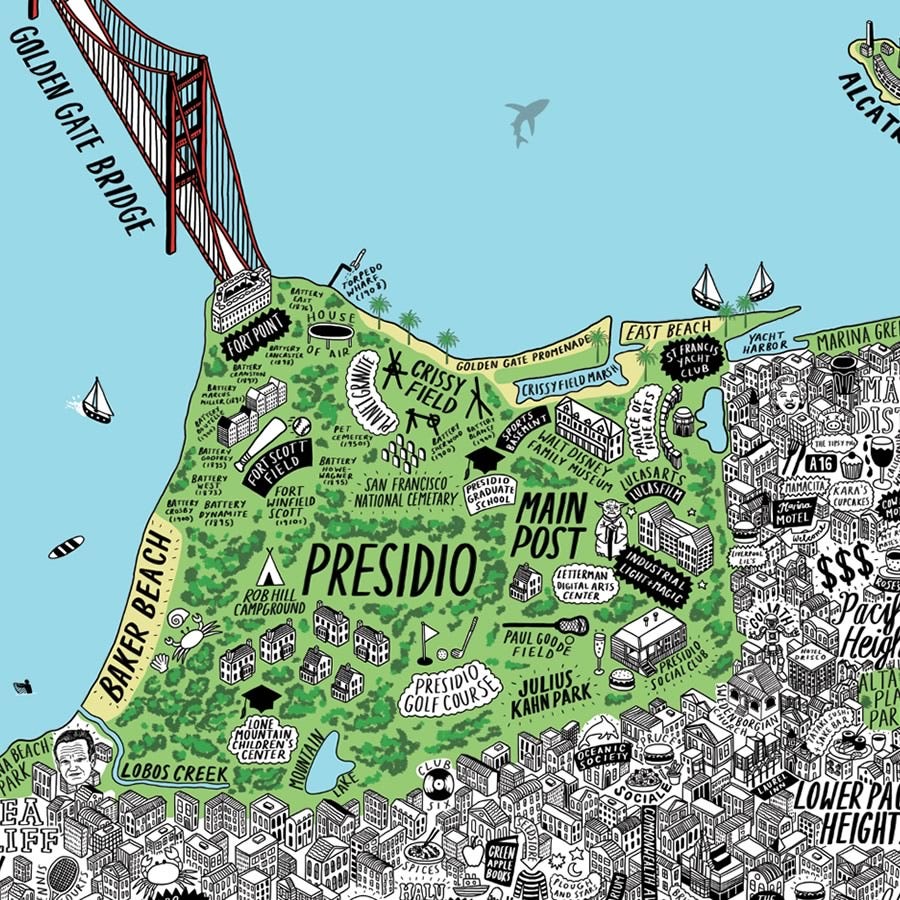 London-based artist and map-maker Jenni Sparks made an insanely detailed hand-drawn map of San Francisco—like, so detailed I expected to zoom in on 14th and Church to find an adorable rendering of the time I fell so hard crossing the street that my shoes fell off.