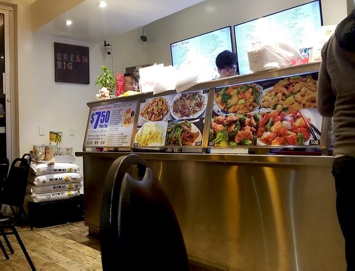This is mostly a place to order delivery — they have like one or two tables inside to eat. And I would describe the menu as essentially grocery store American Chinese food. Delivery arrives so fast that I assume Wok Station workers scoop it out of big, heated chafing dishes. But that doesn’t mean there aren’t some delicious options to spoon into a takeout box. I’ll often get their house special chow mein or cashew chicken with a big order of rice. Their spring rolls are always super hot and crispy, and I like their crab wontons, too. Honestly? Check Yelp first for some menu items you also might avoid.