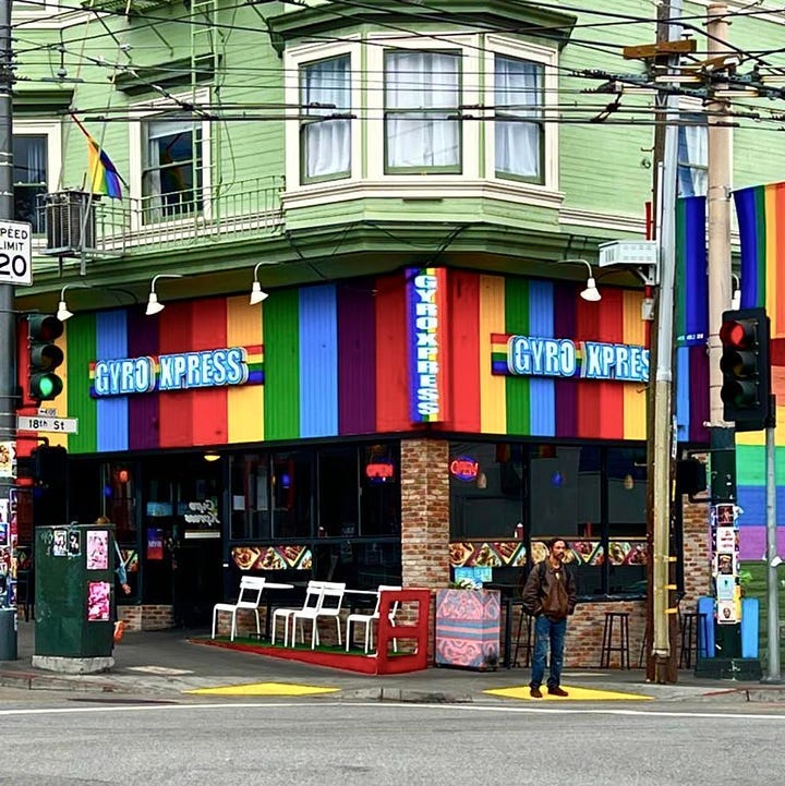 Another no-frills Castro spot that’s good to hit up after a lot of drinking. I find myself at Gyro Xpress about five times a year for one reason or another. A significant chunk of my family is Greek, so I’m often analyzing their Mediterranean offerings here. Their avgolemono soup is above average, although my favorite more lemony version from a restaurant currently is at Jack’s in San Bruno. I most often get a lamb and beef gyro plate and super cold can of Coke from Gyro Xpress; it’s consistently good food, fast service, and always a place to sit at one of the gayest corners in the country — and I mean that in the best way, of course.