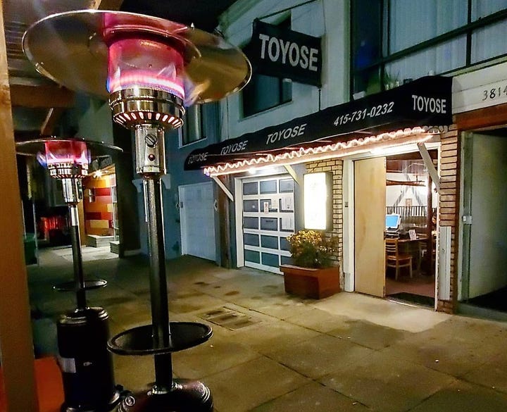 I found Toyose once on a hunt for after-hours spots and was entertained by its very residential look, with garage doors flanking its exterior. It feels more like a local hangout than a formal dining spot, with wooden tables and dim lighting. Tucked away in the Outer Sunset, the restaurant has a reputation for unique Korean comfort food offerings. I only ate there once, and I can only describe the experience as authentically Korean; my dish was a breaded shrimp with all the limbs and eyeballs, not the typical Americanized version I’m used to finding in a cocktail glass or at Long John Silver’s.