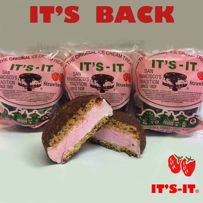 During the first week of June, It’s It brought back a more summery flavor — strawberry — which I have to say I’m much more excited about. Still, if it’s between a pumpkin It’s-It or none at all, I’ll take pumpkin!