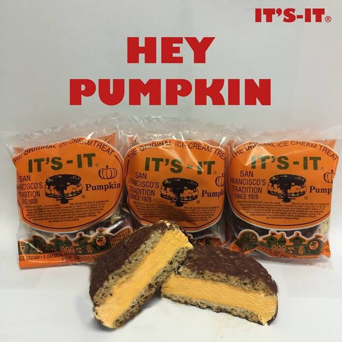 The ice cream sandwich that was invented in SF, It’s-It, has a new “summer” flavor: pumpkin. Yeah, weird, right? Love you, It’s-It, but isn’t pumpkin an October flavor? The formerly San Francisco-based company, now in Burlingame, seems to know it’s thrown us all a curve ball; on Wednesday the company announced on its Facebook page the newest variety of ice cream sandwich made with oatmeal cookies: ‘Introducing our newest flavor to kick off Summer! #WhyPumpkin#WhyNot”’