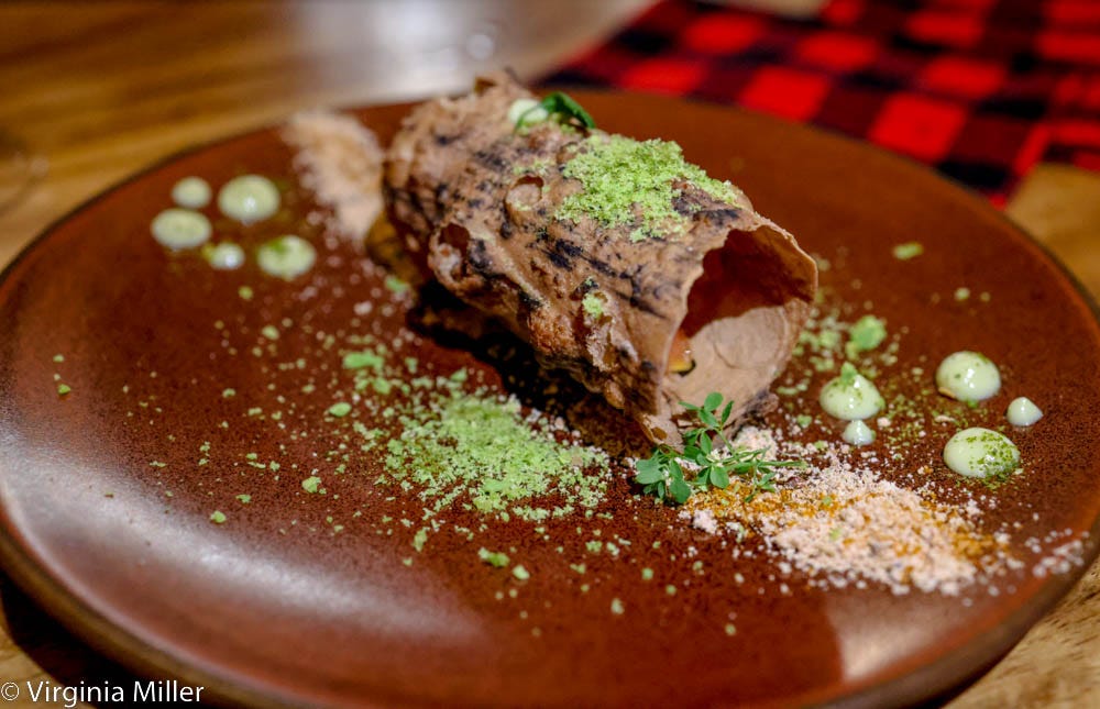 Yes, Merchant Roots’ (MR) chef Ryan Shelton works with a tight team in a tiny space. And I’d go so far as to say he is one of the most creative and inventive chefs anywhere. Despite the 600+ restaurants I get to around the world each year — over 12,000 and counting — I have yet to ever see someone change it up so often, yet stay inspired and go this deep each time. I’ve written about his wildly changing, eight-seat dinners ever since they opened in a cozy wine shop in January 2019, including my in-depth review of MR’s playful Willy Wonka menu.