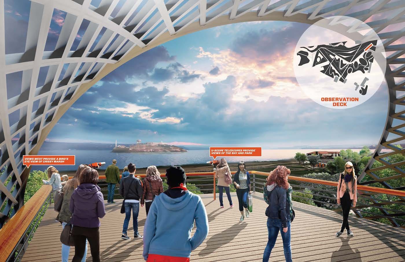 CMG Landscape Architecture (San Francisco): Local group CMG is responsible for notable SF projects including the SFMOMA Rooftop Sculpture Garden and the Transbay Terminal Under Ramp Park. With their design for the Presidio, “The Observation Post,” the firm would expand the area’s marsh (and include a “floating playground” above it with nets to bounce across), convert the Sports Basement building into a youth learning center, and construct an “airfield bridge” above Mason. If that’s enough design to make you need a drink, you can stop at CMG’s planned Slough Brew Beer Garden.