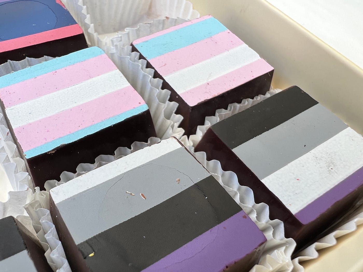 The box features truffles with your standard rainbow Pride flag. But the Say It Louder box expands beyond the rainbow flags you see plastered on so many products in June, incorporating flags of diverse subgroups like the transgender, bisexual and asexual communities. It’s a nice nod to the wide variety of different people who all fall under the broad banner of “LGBTQ,” and the kind of expansiveness that more brands should embrace.