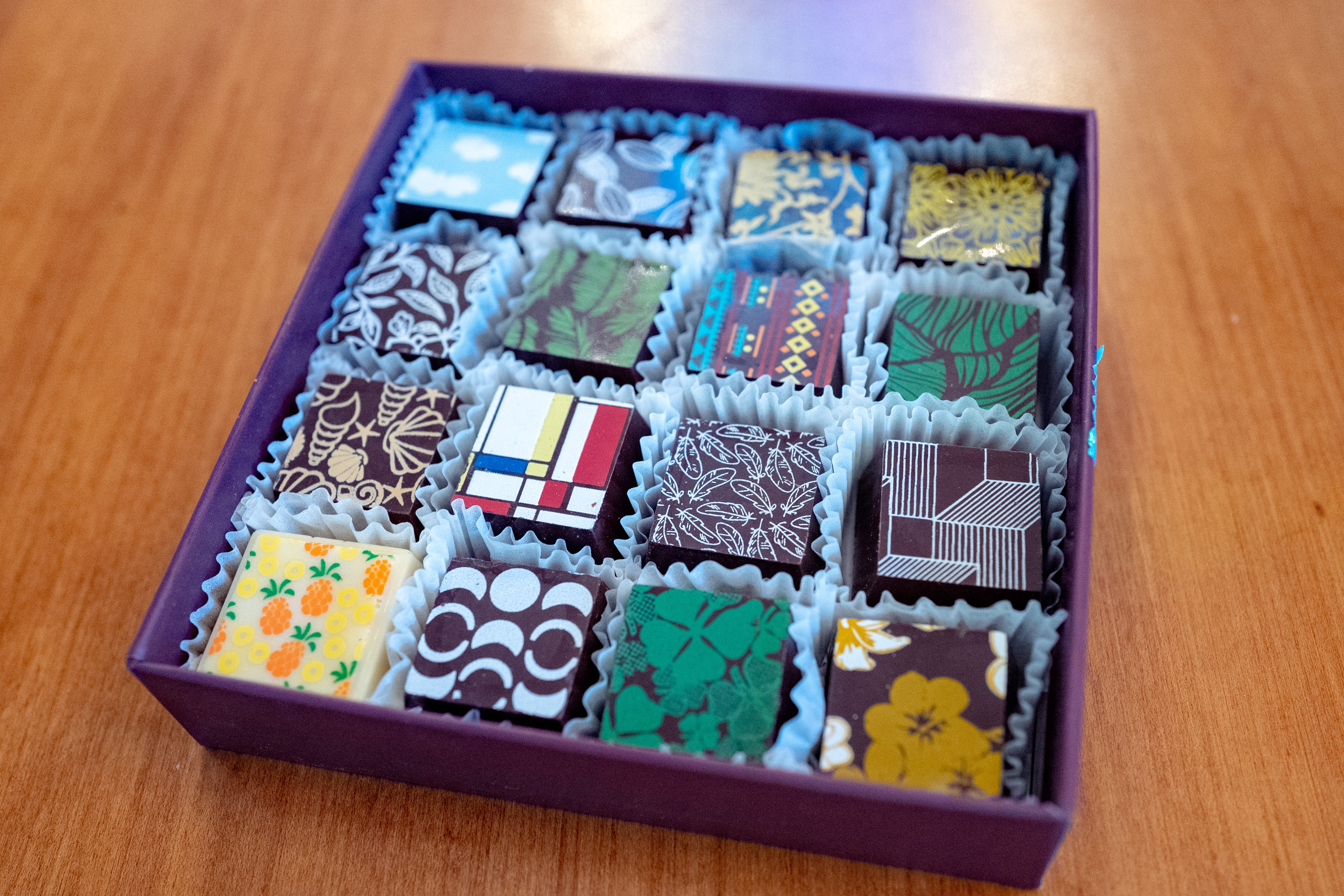 Gancia admits that the timing wasn’t great. Launching in June, she wrote to me, was “not…ideal”, but she feels lucky to “see more chocolate lovers know about us”, and for that fact that her store has begun to attract interest on a national scale. Last Fall, Kokak expanded its production and shipping capabilities in order to send truffles anywhere in the continental United States, as well as continuing to serve walk-in visitors in the Castro. Gancia shipped me several items to try out, including a “Sweet Sixteen” box of mixed truffles, a single-origin chocolate bar, and a Castro Pride box celebrating Pride Month and the city’s LGBTQ community.