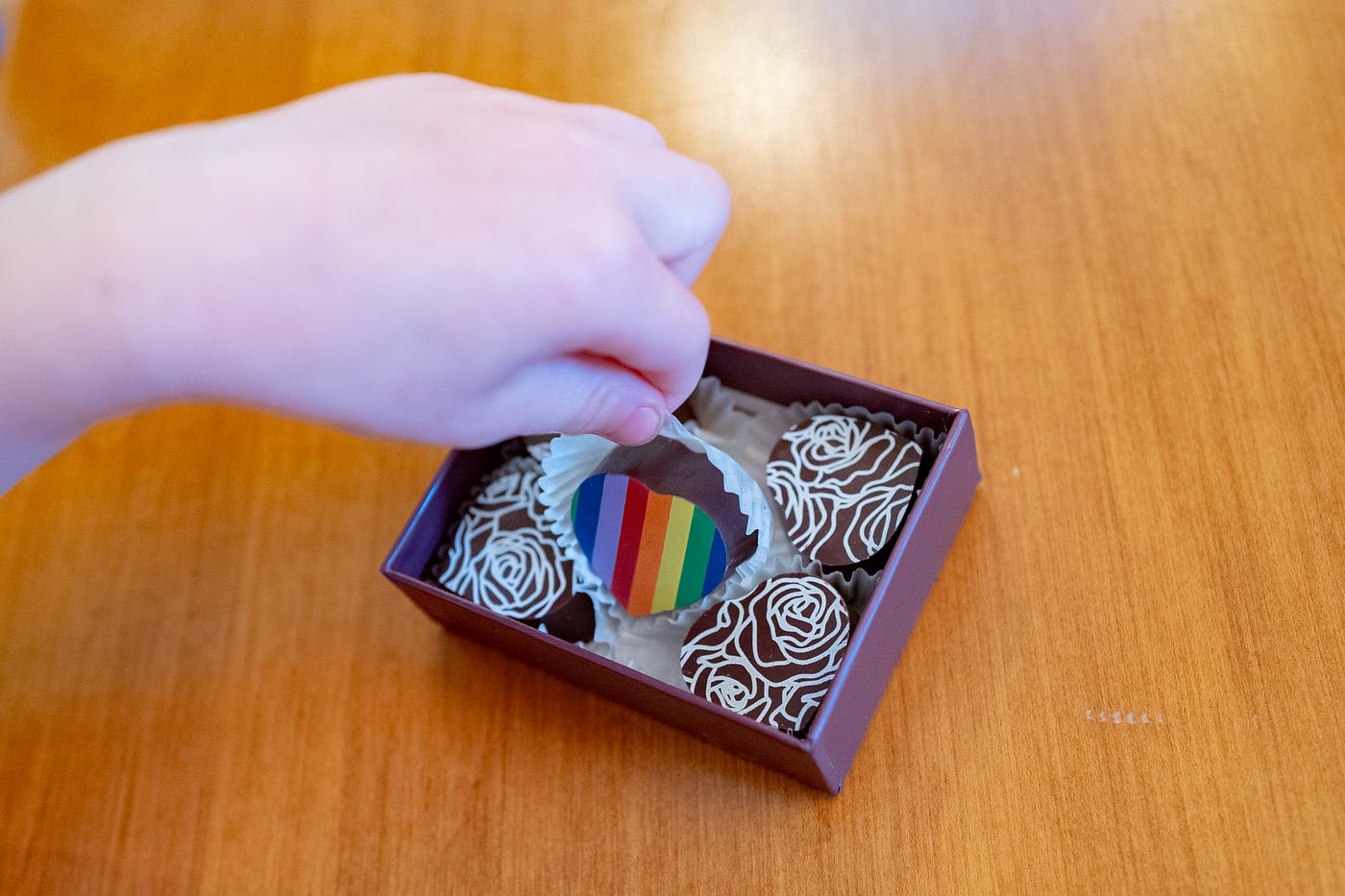 Although he likely doesn’t yet understand the significance of the flag, my four-year-old loves rainbows, and I was barely able to photograph Gancia’s Castro Pride box before a tiny hand snatched the signature rainbow truffle away.