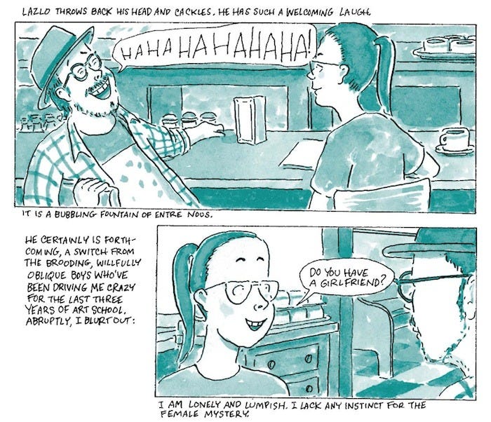 The whole place was one giant inspiration. Visually, it was gorgeous. Beyond that, there’s a native wit ingrained in the place. It may have started with Nestor Marzipan — the real-life inspiration for Lazlo Merengue — but to this day, the people working there really seem to specialize in clever repartee. I think at the time it was thrilling for me to find a place where people could think on their feet and come back with brilliant repostes, all while pouring coffee and bussing tables and frying eggs.