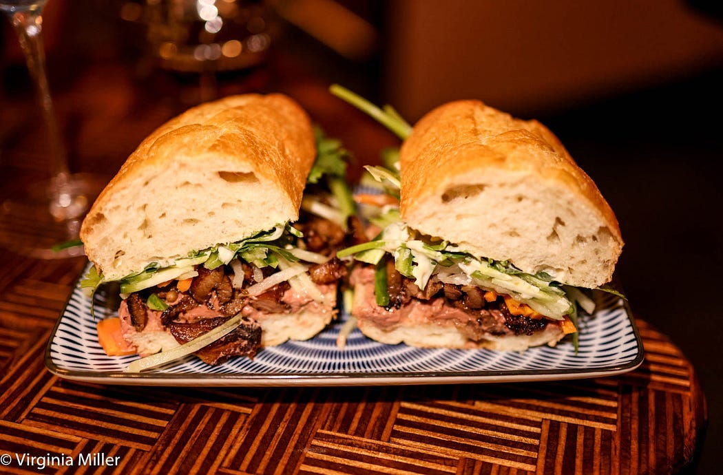 Heftier dishes include Taiwanese pork belly buns laden with scallions and peanuts, with pickled mustard greens and jus bringing a needed bright acid hit to fatty-good pork belly. Likewise, spicy Thai chilled noodles tossed with bell pepper, herbs and peanuts in “Lilah sauce” deliver cool contrast to warm dishes. Rosenblum’s banh mi succeeds on properly crusty-flaky French bread, packed with lemongrass pork and house paté, pickled veggies, jalapenos, cucumber and “umami sauce.” It integrates nicely in a crisp, meaty yet restrained whole.