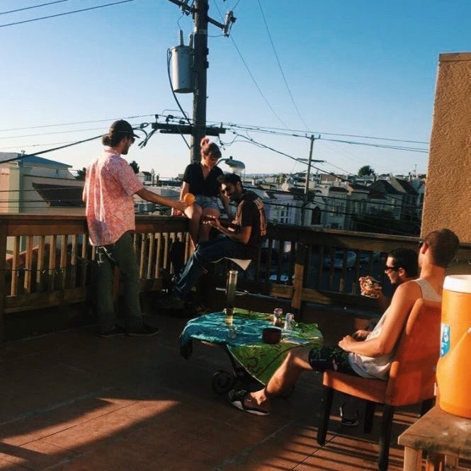 I’ve had sex on that balcony, snorted cocaine with at least 10 people off the putrid countertop of our communal kitchen, taken Molly at 9:00 p.m. on a Monday night, conducted a job interview while the police were raiding the house and danced with my friends till our bodies collapsed. I had a coordinated housemate acid trip while watching Flying Lotus music videos after a big Thanksgiving dinner; co-hosted a benefit for the tragic fire that burned down the Oakland Ghost Ship warehouse; and hosted the biggest Halloween house party in San Francisco, which brought in four hundred people. Through these gatherings I have learned more about humanity than I ever thought possible.