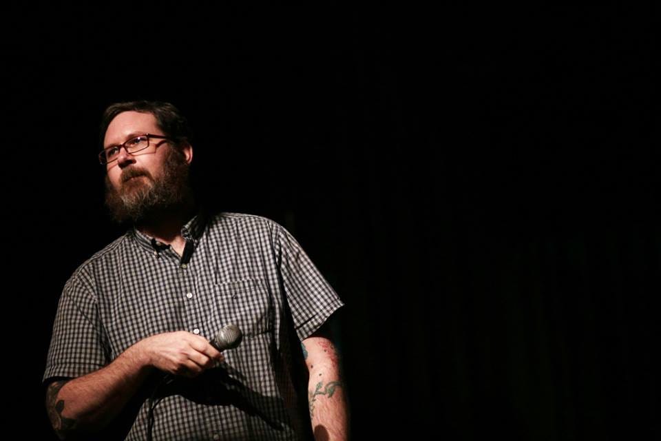 Chris Conatser after a guerrilla stand-up set at a strip club. Photo courtesy of Chris Conaster.