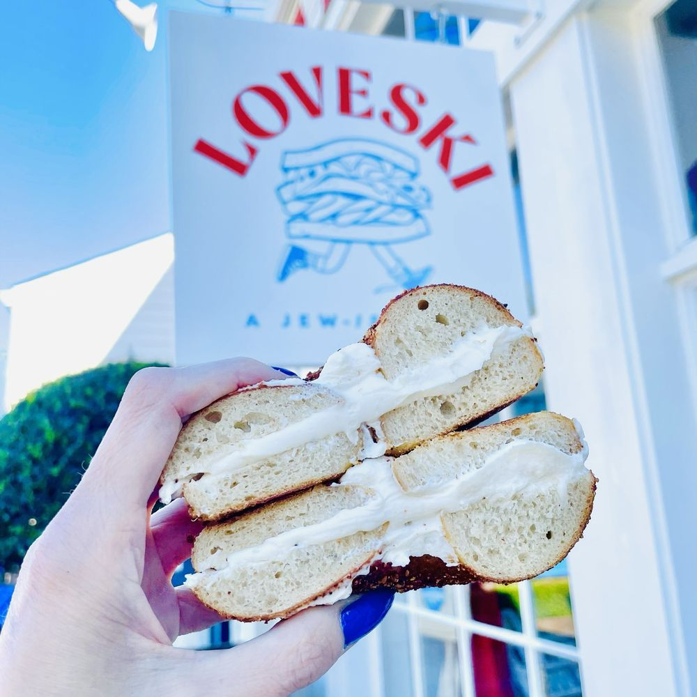 Loveski started as a "Jew-ish" deli concept—that's their hyphen, not ours—at Napa's Oxbow Public Market in 2022, followed by a second location at the Marin County Mart in Larkspur. The name is a tribute to Kostow's pre-Ellis Island family name. The bagels are made from a 30-year-old sourdough starter, boiled in honey Montreal-style, and are decidedly not trying to be New York or Montreal. They won the Chronicle's blind tasting of the entire Bay Area last year, which makes the opening of this third location feel less like a restaurant news item and more like a civic event.