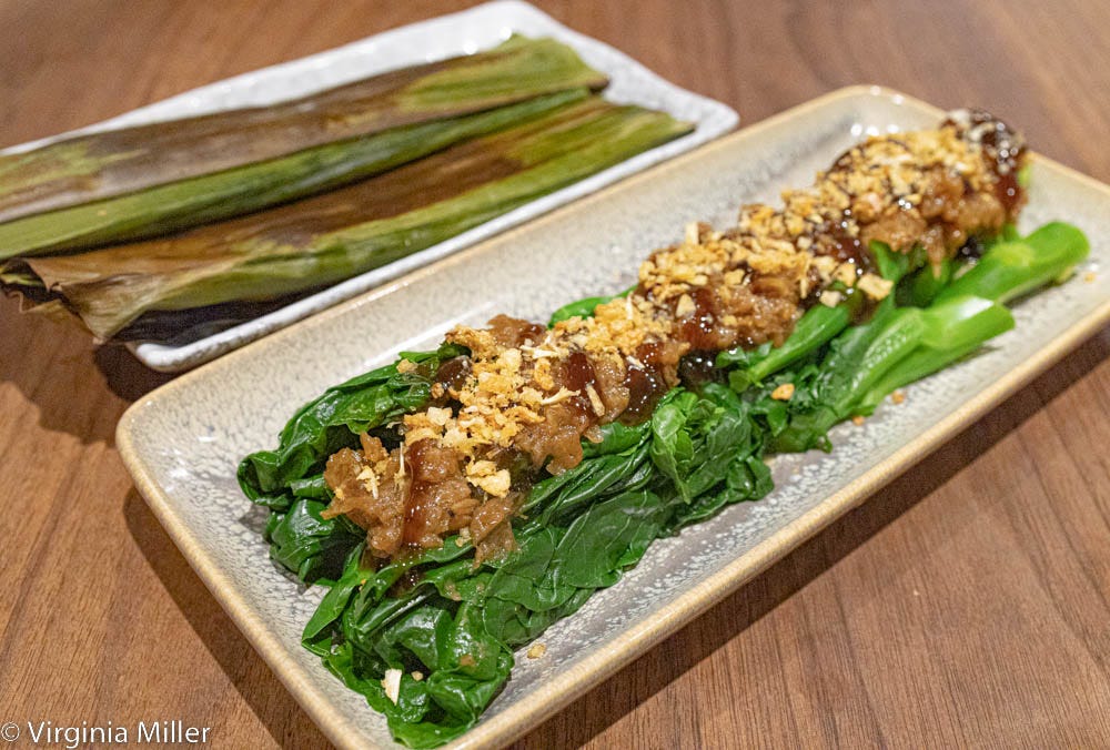 “The best greens” are large stalks of gai lan broccoli served room temperature, retaining more nutrients and nourishment. Warmed by a house onion oyster sauce and fried garlic, the sauce livens up the gai lan, even if it was a bit tough to distribute sauce somewhat evenly across each bite.