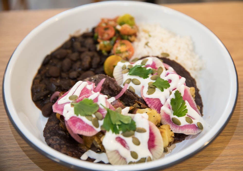 Open November 2021, my best experience at Camino Alto was during weekday lunch with order-at-the-counter service. Our friendly server was as attentive and welcoming as if we were in an upscale restaurant. From lively natural wines, like Austrian 2018 Kolfok Intra! The Wild Grüner-Welschriesling, to a dense rocket (wild arugula) salad of roasted cauliflower, hass avocado, morita hummus, pomegranate, sunflower seeds, celery and flame raisins in coriander lime dressing, the food is gourmet-gratifying. Also at lunch, two hefty tacos with a side beans and rice are not exactly Mexico-traditional, but full of impeccable ingredients (I like the Japanese sweet potato tacos packed with fennel, roasted pepitas, morita salsa, crema, radish, pickled onions, cilantro for something different).