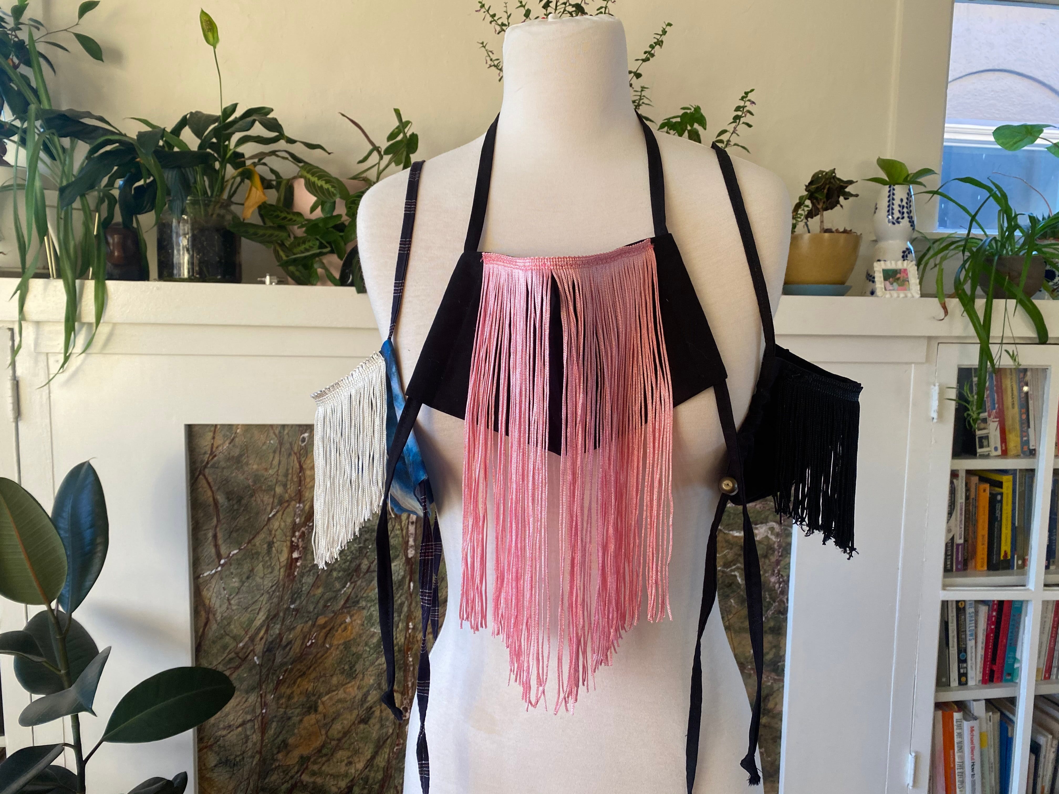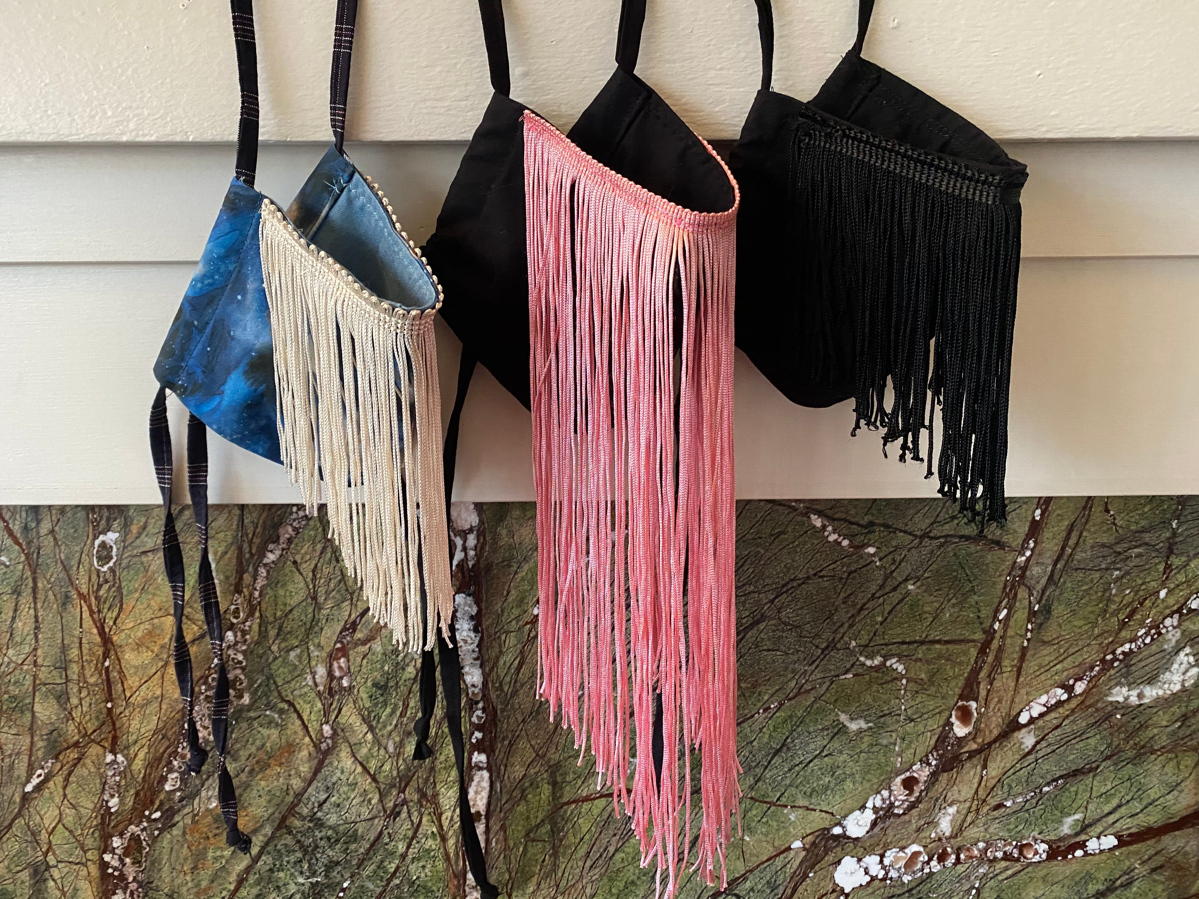 Currently, there are two ways to get one of my fringe masks: in person at Heads or Tails Collective in Oakland (1523 Webster Street) or by DMing my Instagram, @wordforworld. I keep photos of all my available masks in my profile highlights, along with pricing and shipping info and current color/pattern options for anyone who wants a custom mask.