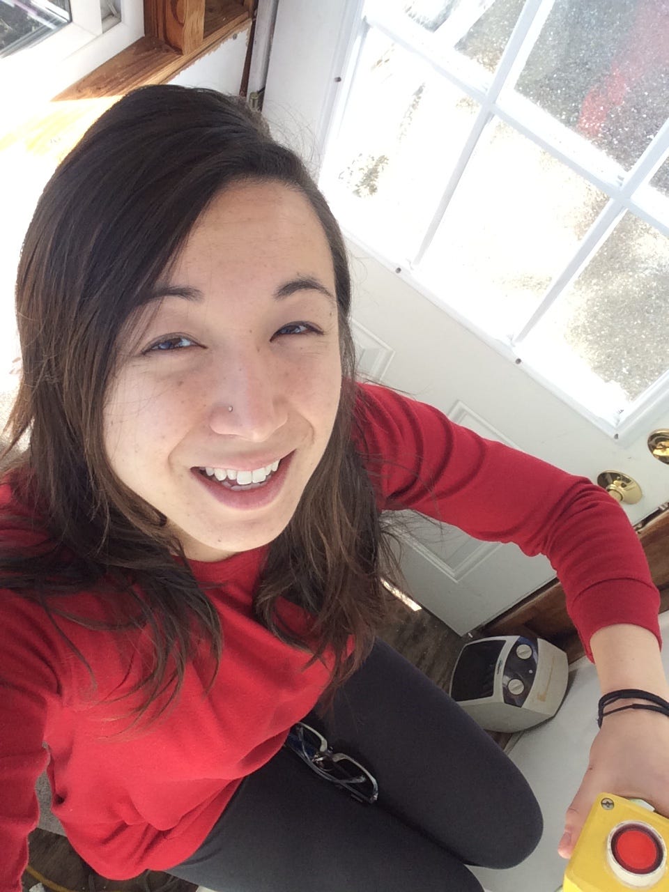 Naturally, should a plane or satellite fly into the “laser-beam restriction zone,” the laser spotter must smash the bright-red, Looney Tunes–esque kill button and deactivate the laser to prevent any aviation disasters. (You can see the kill switch in Helen’s selfie of her sitting in the laser-spotter booth.)