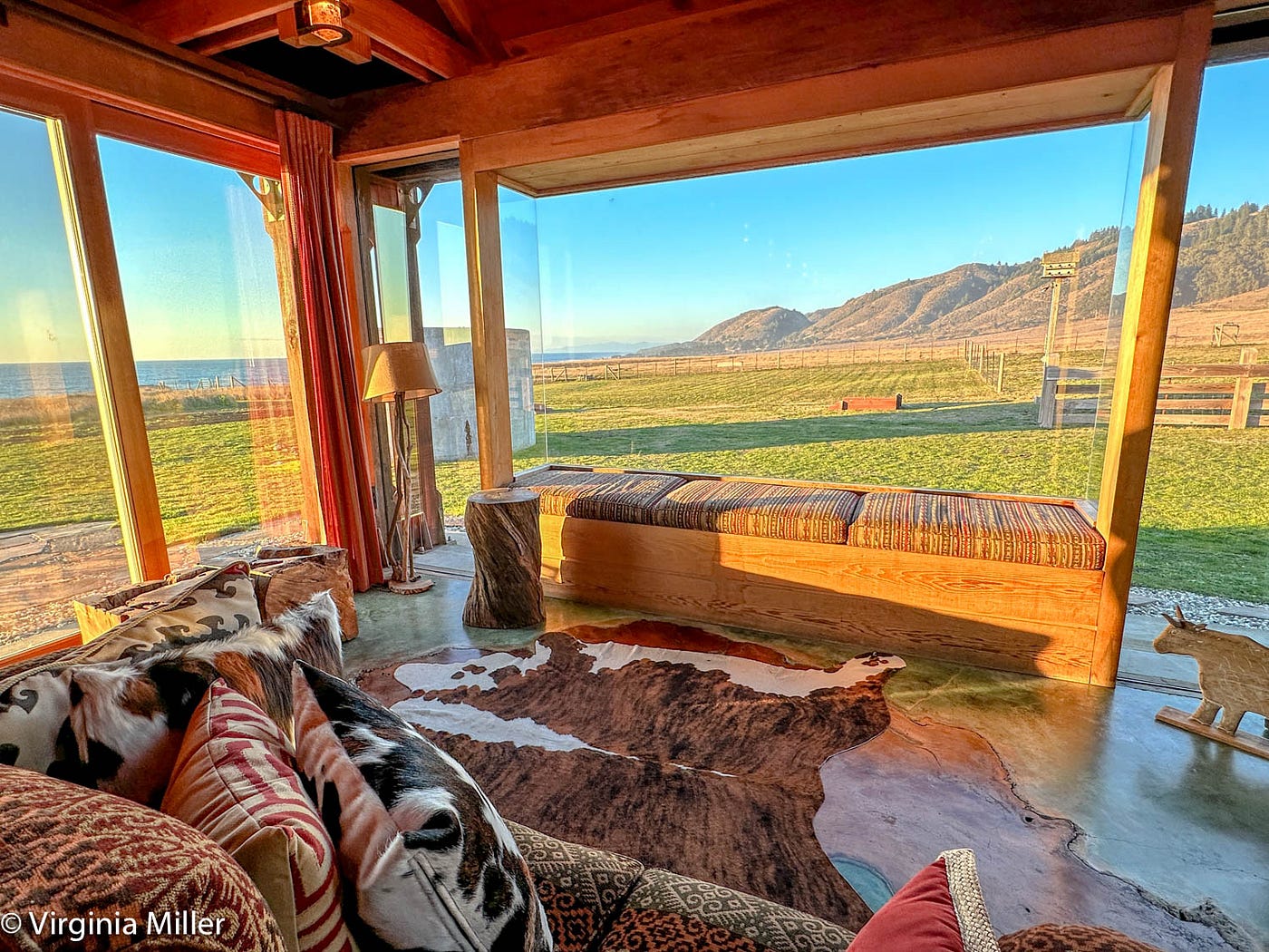 Which leads me to the food: chef Stacey Hughes changes the menu each night with three courses and a couple choices in each course, including vegan/vegetarian dishes. There are basic picnic lunches they’ll pack for you to take cliffside or as hike across miles of paths, with nurturing breakfasts each morning in the main house. At dinner, we feasted on the likes of a rich chanterelle pot de crème with ranch-foraged mushrooms, laced with Cognac and cream, and Pacific halibut partnered with tomato, sweet peppers, lemon, dill and wine. A selection of local cheeses with honeycomb and crackers made an ideal dessert, while plenty of local wines and lush, medium-bodied reds like 2017 Domaine de Chevalier Grand Cru Pessac-Leognan from Bordeaux, France, enhanced each course, from a list curated by general manager Blair Foster and Mark Bowery.