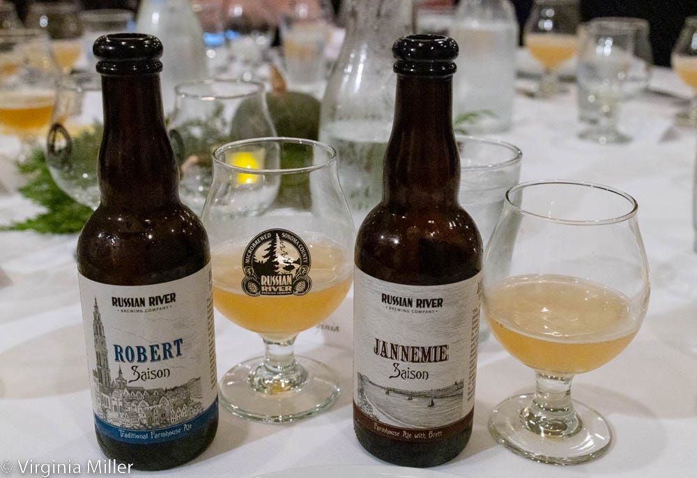 The meal rolled on with highlights like a seemingly simple chanterelle, frisée, marcona almonds and lardon salad dotted with fifth-generation innkeeper Cally Dym’s (Mark’s wife) preserved Dry Creek Peaches. Flavor-packed and juicy, they almost equal fresh peaches, paired with RRB’s Peach “Small Batch Series” made with peaches from the same legendary farm (6 lbs. of peaches per gallon of beer)!