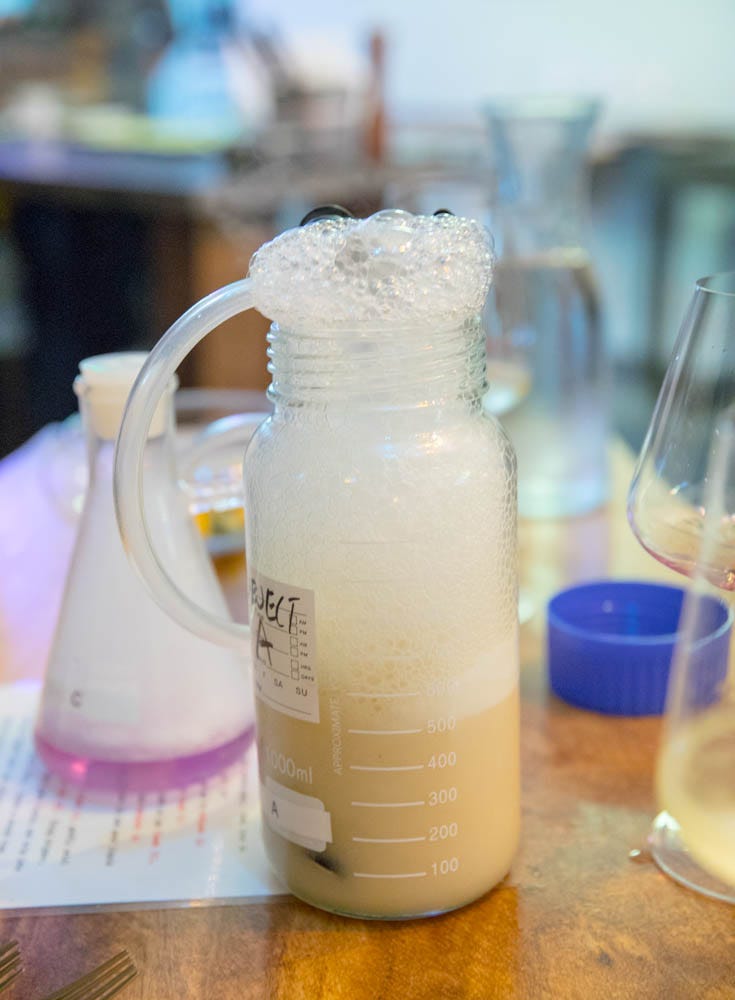 Again, saving a few surprises, let’s just say our intimate dining room of four wood tables in a circle entered full-on childlike wonder mode as we ended the meal slurping up strawberry bubbles.
