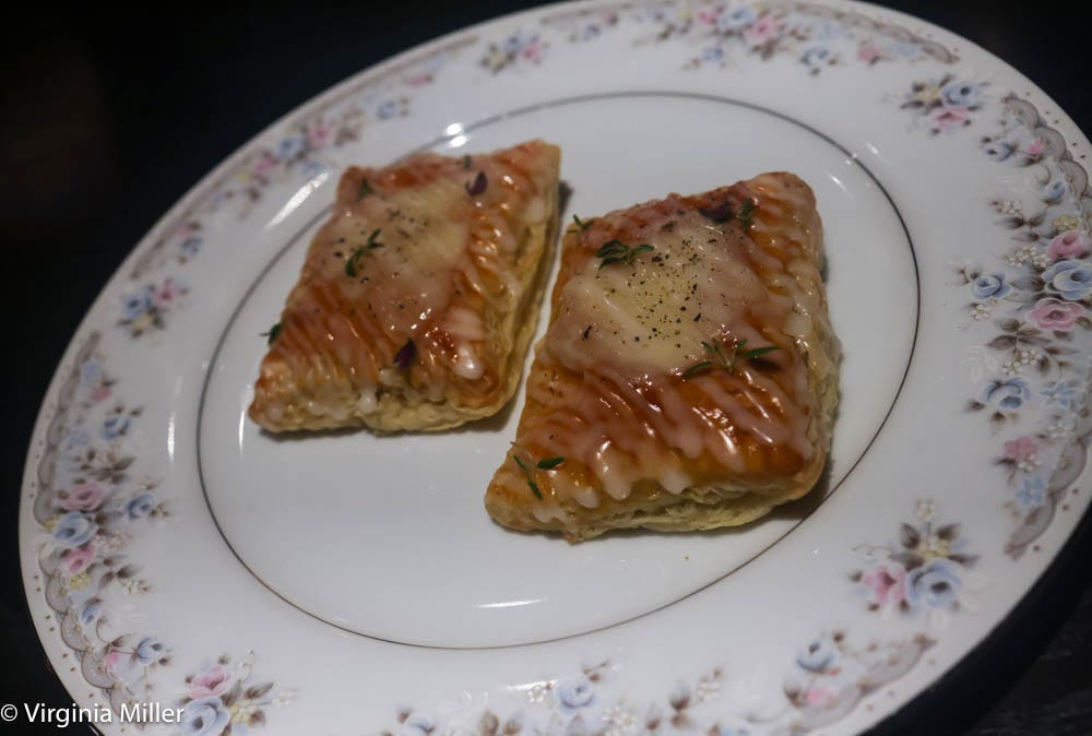 Dessert is no throw-away, continuing in Wages’ playful spirit, from ice cream sandwiches to a savory-sweet pop tart. This puff pastry is filled with a puree of clarified onion butter, dehydrated cherries rehydrated with tawny Port. On top is Jasper Hill Farm’s Harbison cheese and a glaze of ice cider, black pepper and thyme.