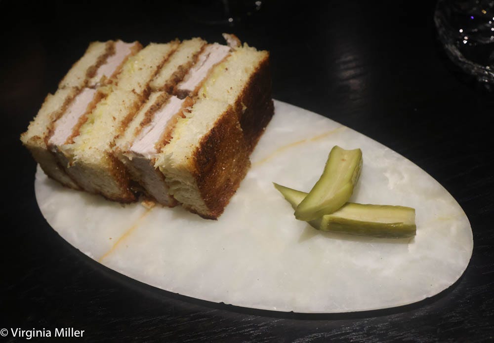 More edible fun is had with de-boned, stuffed and lightly fried chicken wings filled with braised tendon and scallion sticky rice. Accompanying house fermented Fresno chili hot sauce threatens to steal the show. Wish I could bottle and take it home. Though a pork katsu sandwich is Japanese in origin, it reflects chef Hengelfelt’s Germany home. A tenderized pork chop is breaded and fried in puffed rice, served on fluffy grilled milk bread with house fermented sauerkraut, spicy apple mustard and house pickles brined in a white balsamic vinegar blend.