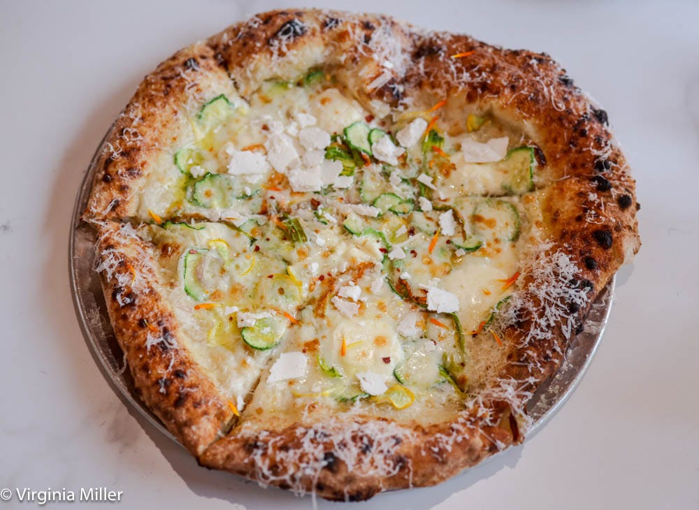 Molti Amici’s squash blossom pizza. Photo by Virginia Miller.