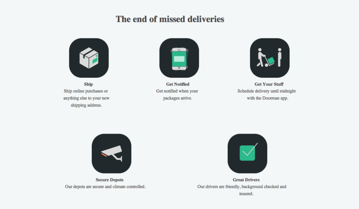 When users use Doorman, they send packages to a Doorman shipping depot address instead of their normal address. They get an online notification from Doorman when their package has arrived at the depot, and then users can schedule delivery time via the app. Another cool thing about Doorman — should your delivery come when you’re out of town, it will hold your package for up to six weeks at their “secure and climate controlled” depot.