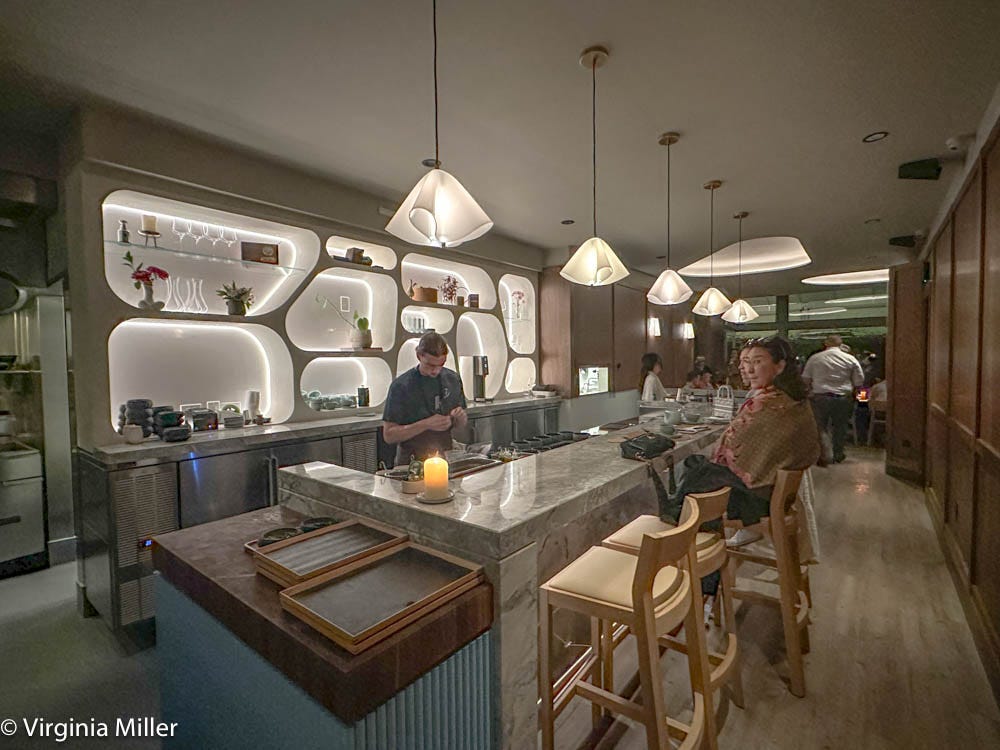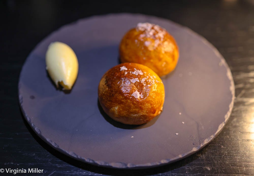 There were crowds outside on the cool November night I dined, waiting for their reservations or looking to snag a seat at the small, marble chef’s bar with custom butcher’s block. Five-courses starts with a choice of seafood starters, a veggie course, three choices of modern-creative pastas, three main options with sides for the table and two dessert options. There were supplements on a couple courses to upgrade with caviar or A5 wagyu beef. Serena’s fluffy, warm milk bread comes free with 72-hour cultured butter, making me quite full by meal’s end, though courses look small to start.