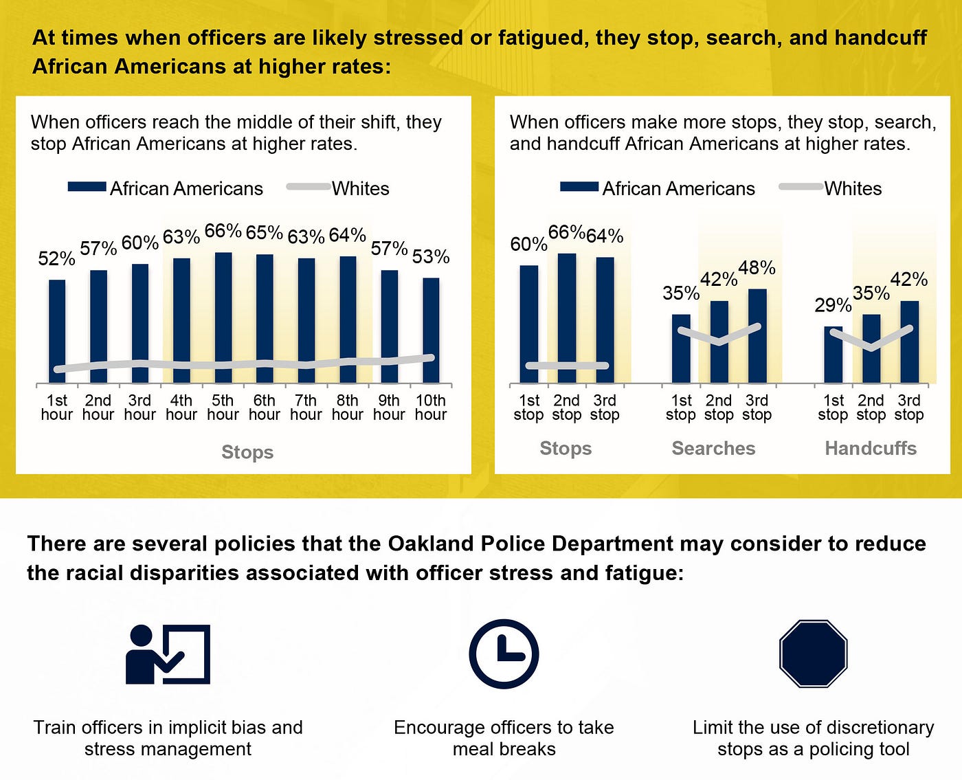 Hunt’s analysis reveals that at times when police are likely stressed and fatigued, officers stop, search and handcuff African Americans at higher rates than they do to people of other races.