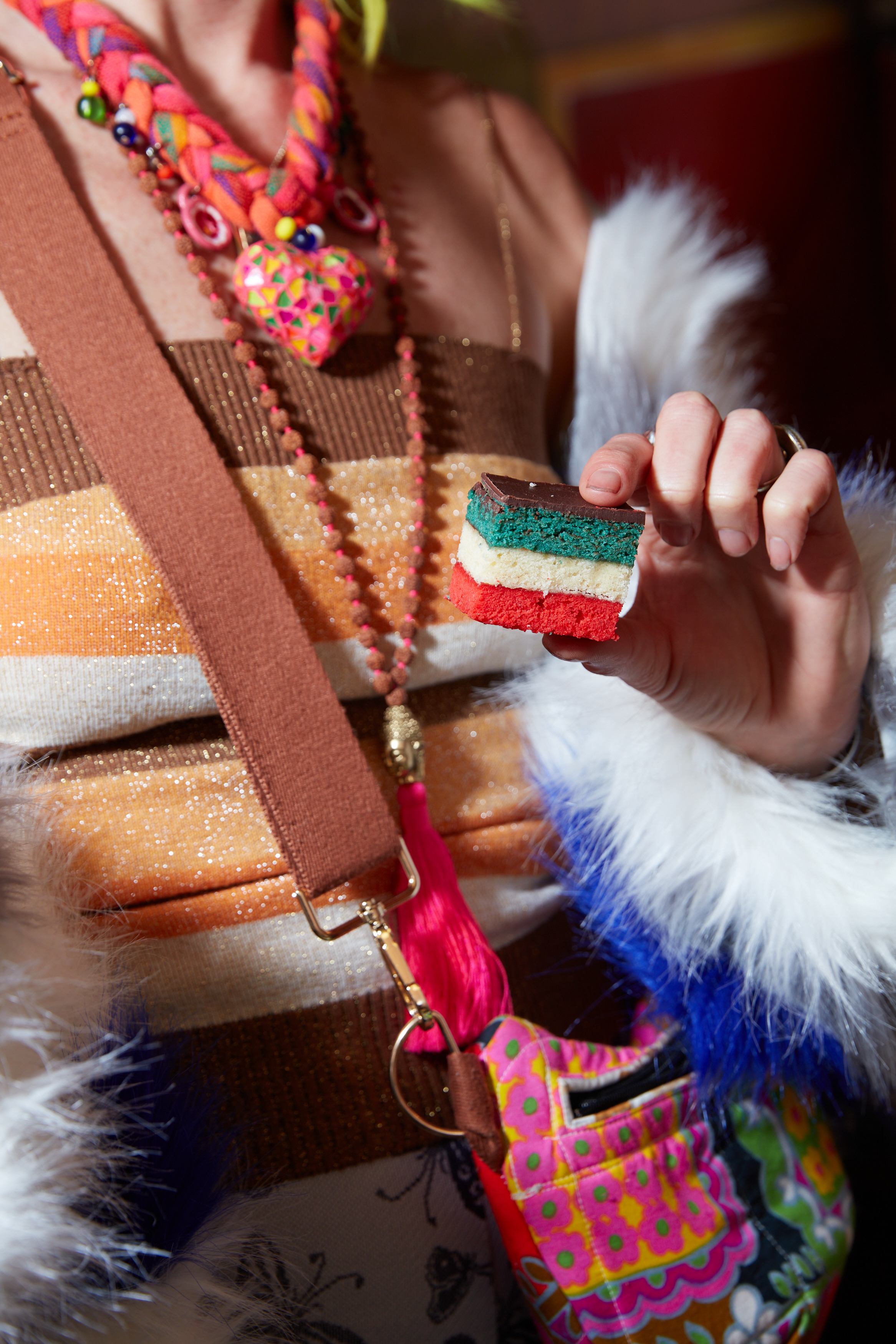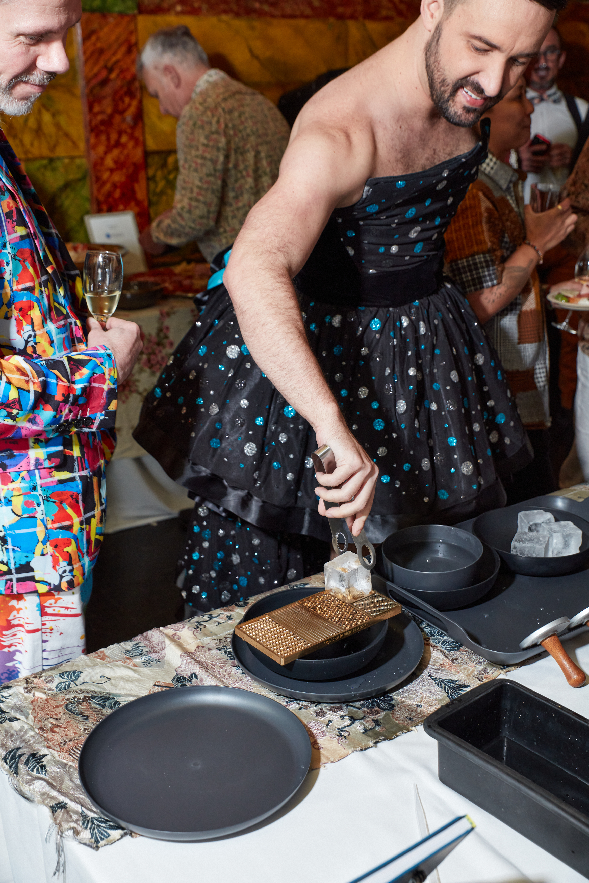 Sponsored goodies galore flanked the room from El Tesoro, Free Spirits, Highland Park, №3 Gin, Old Potrero, and Select Aperitivo. I personally loved the layered cake in Italian flag colors and a station that let you melt fancy designs on oversized ice cubes. It all was giving me Pride diet: